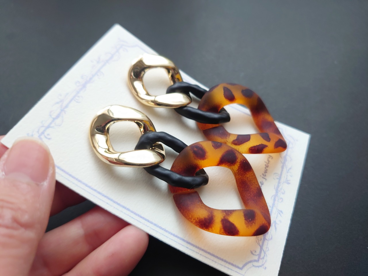 半額以下セール! 大ぶり チェーン パーツ ピアス レオパード / PohonhandmadeJewelry