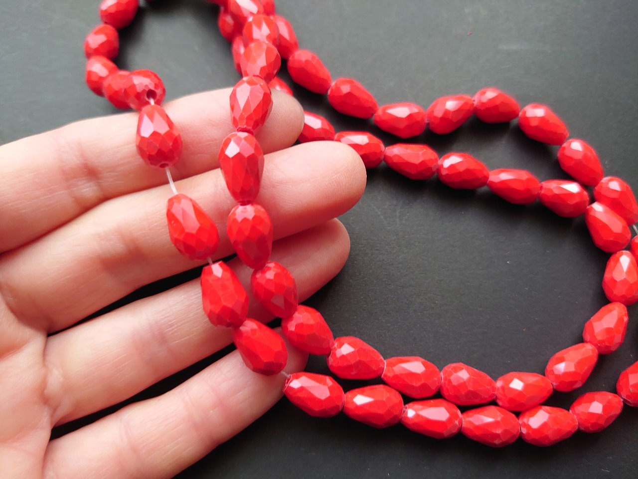 ガラス 多面カット レトロ レッド しずく ビーズ 4個