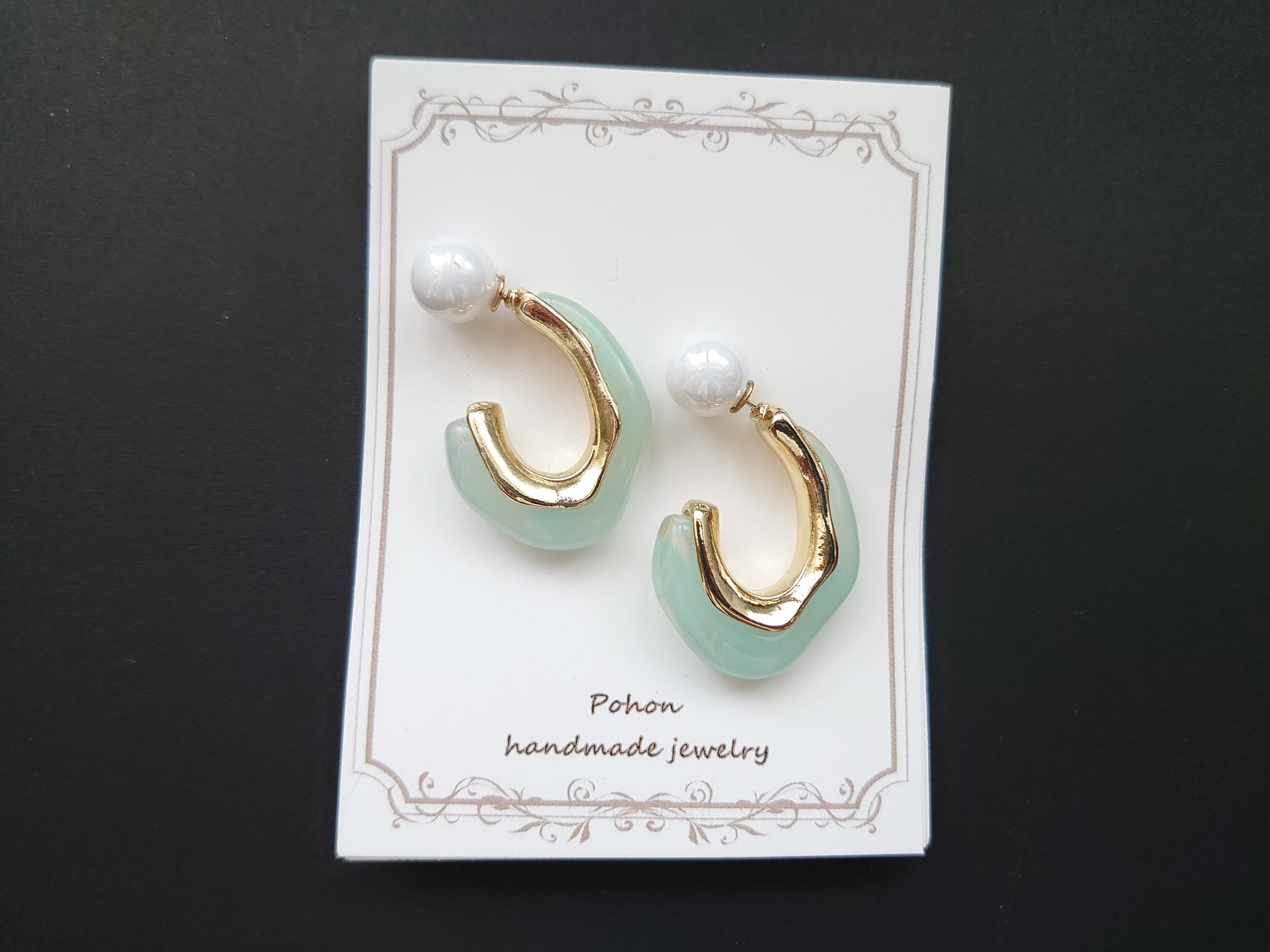 半額以下セール! ビーズキャッチ ゆがみ フープピアス / PohonhandmadeJewelry