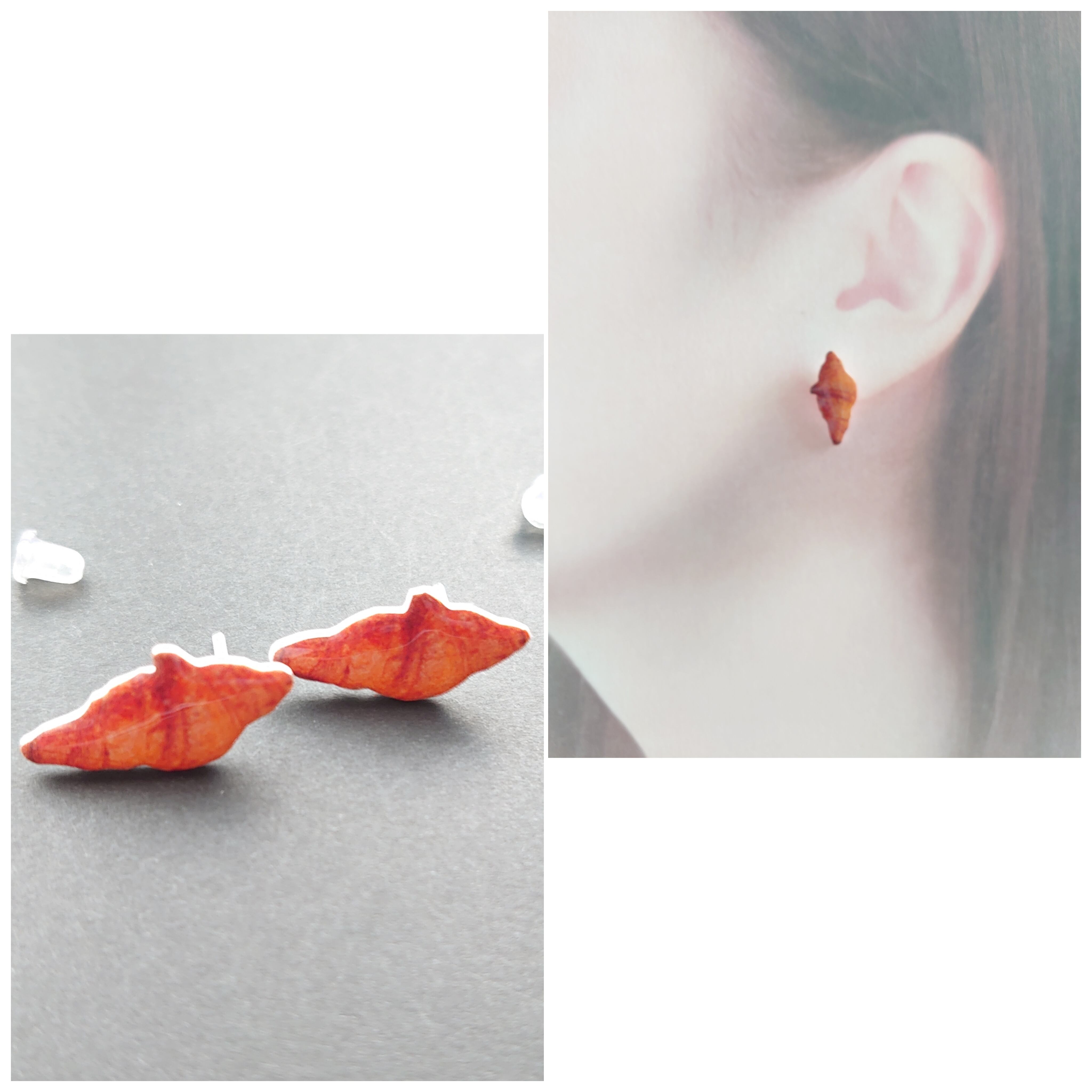 半額セール!リアル クロワッサン 樹脂 ピアス / PohonhandmadeJewelry