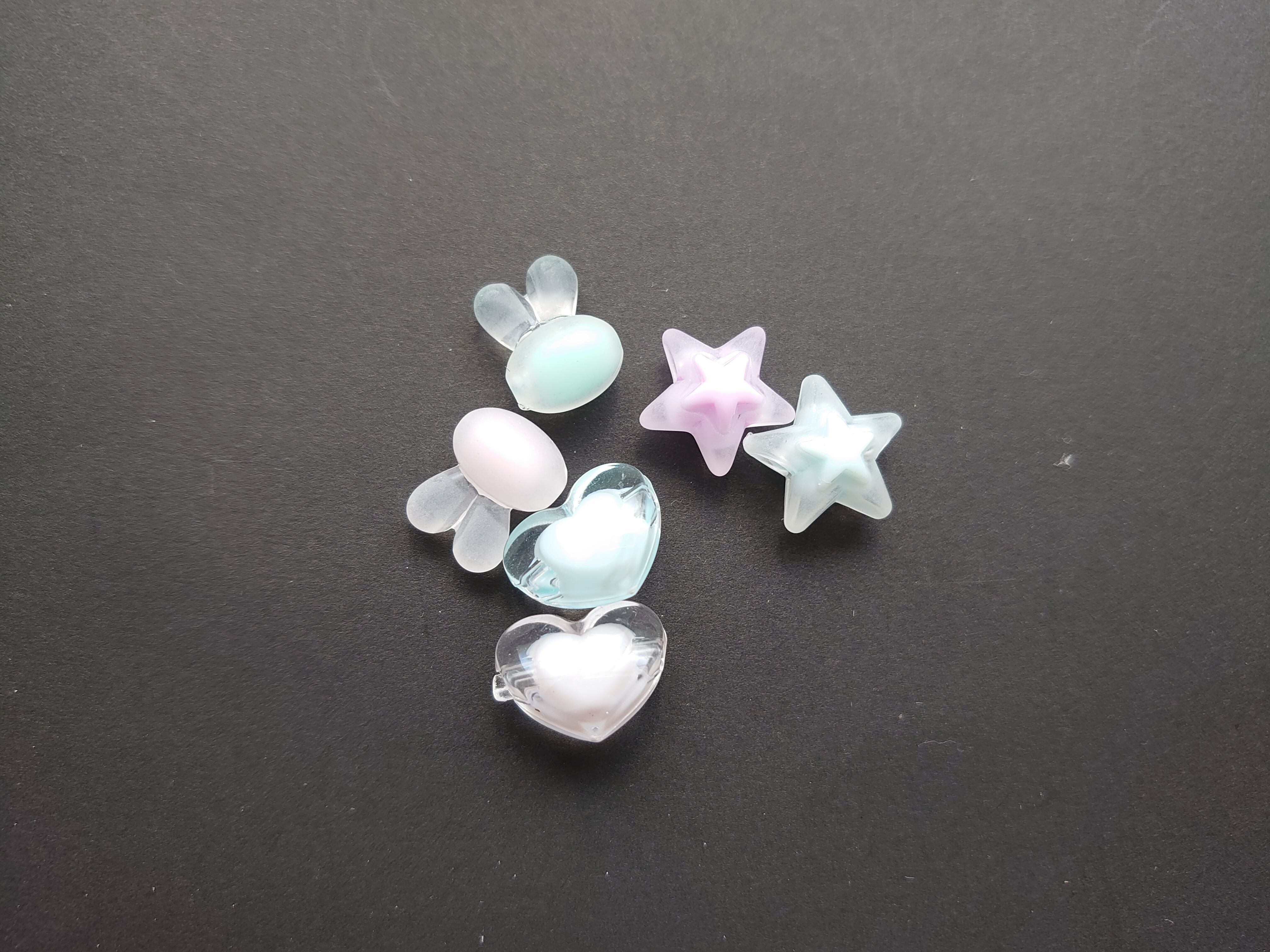 アクリル クリア 中央パステルカラー 横穴 ビーズ ハート うさぎ スター 5個
