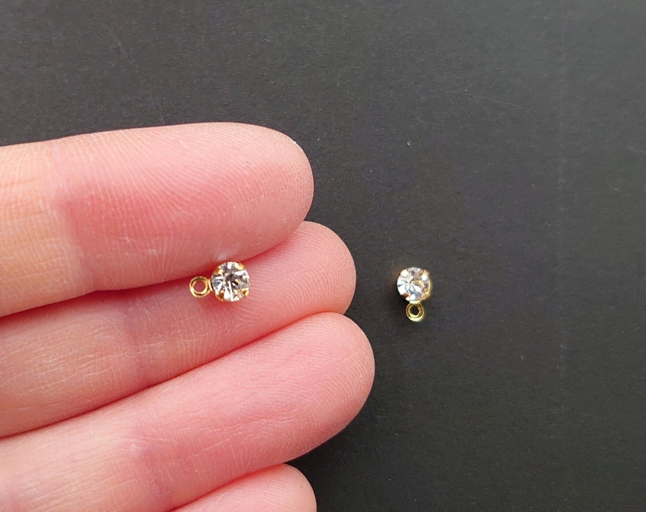 【値下げ在庫限り】真鍮 ラインストーン チャーム 4mm ゴールド色 2個