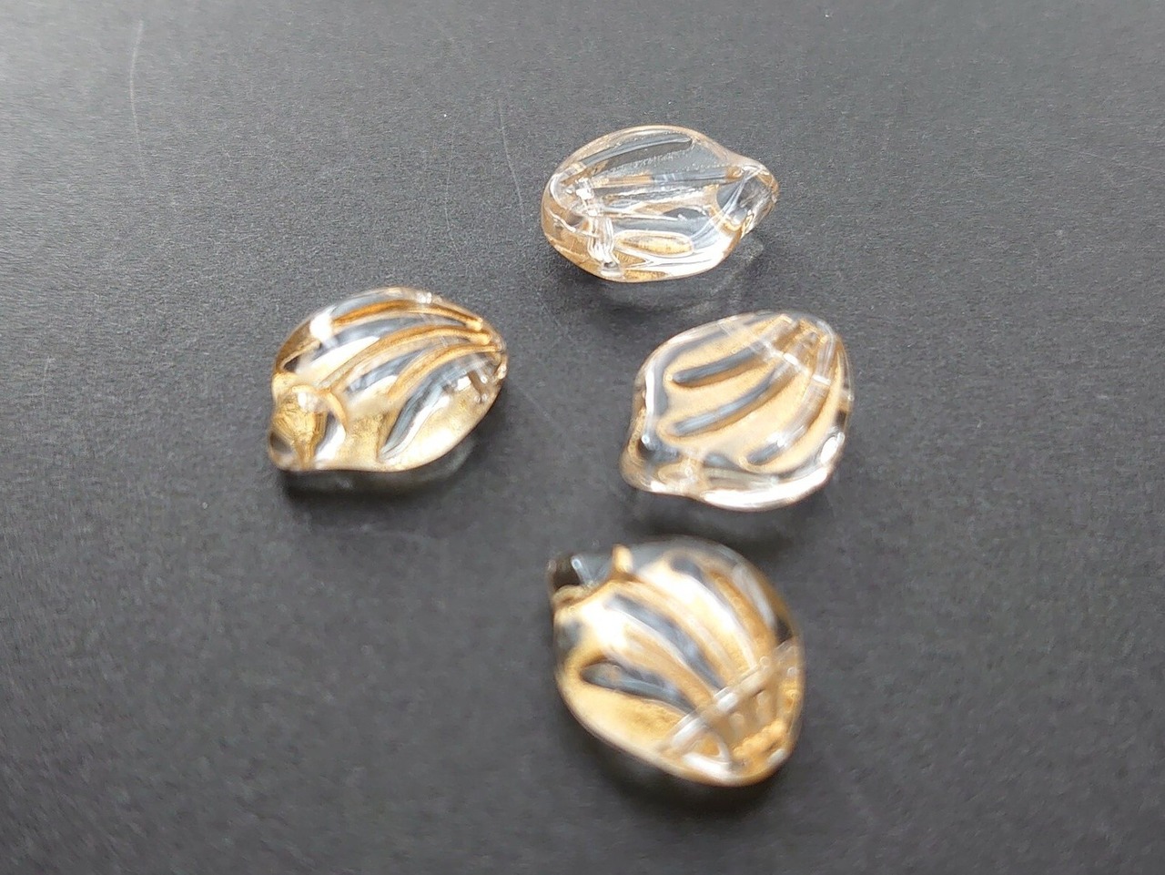 ガラス 花びら ゴールド×クリア パーツ チャーム 2個