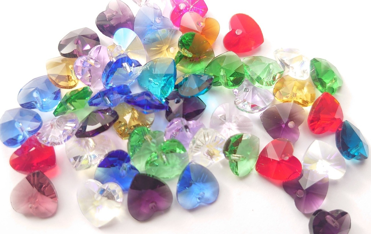 ガラス 多面カット ハート チャーム ミックスカラー 3個
