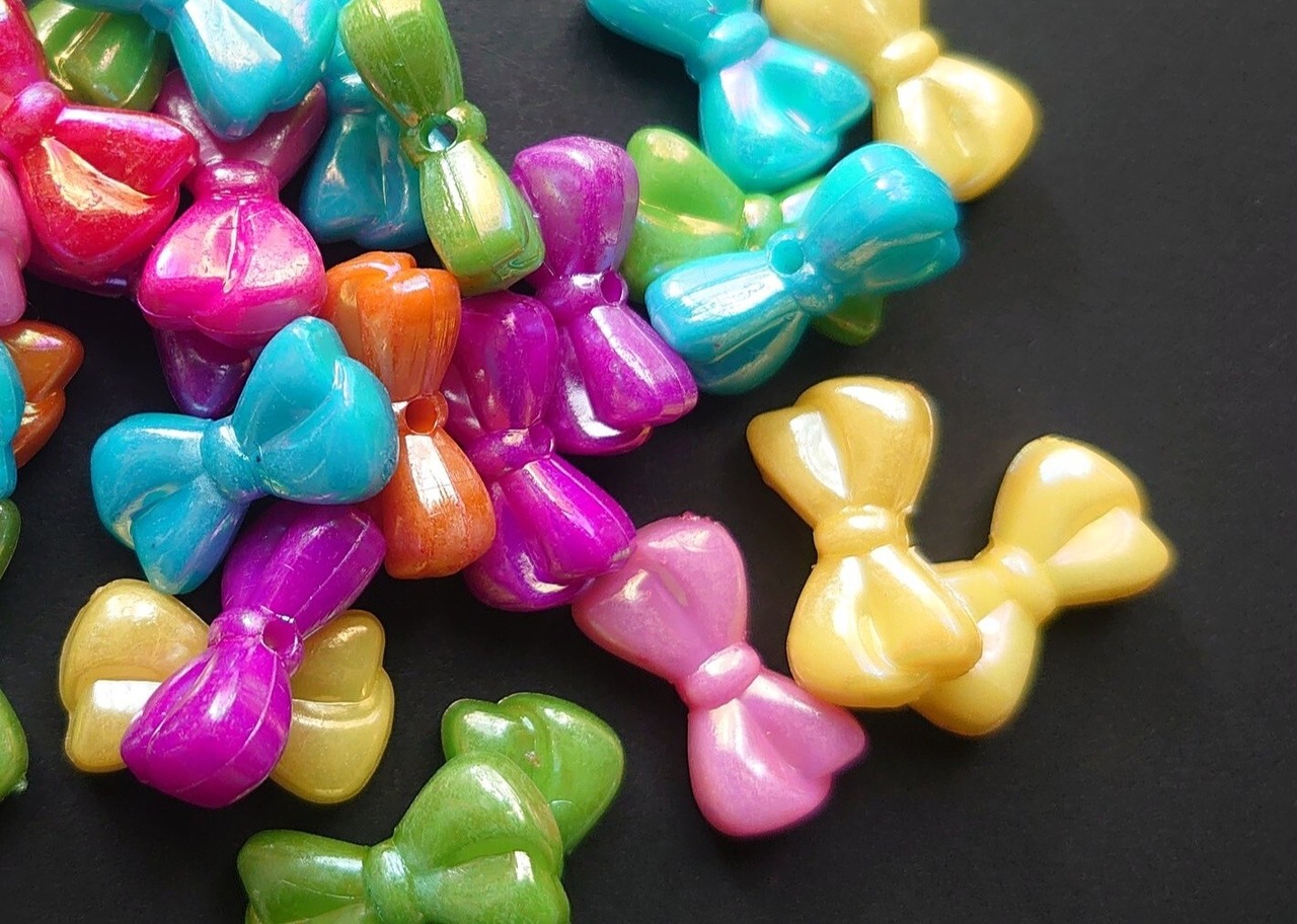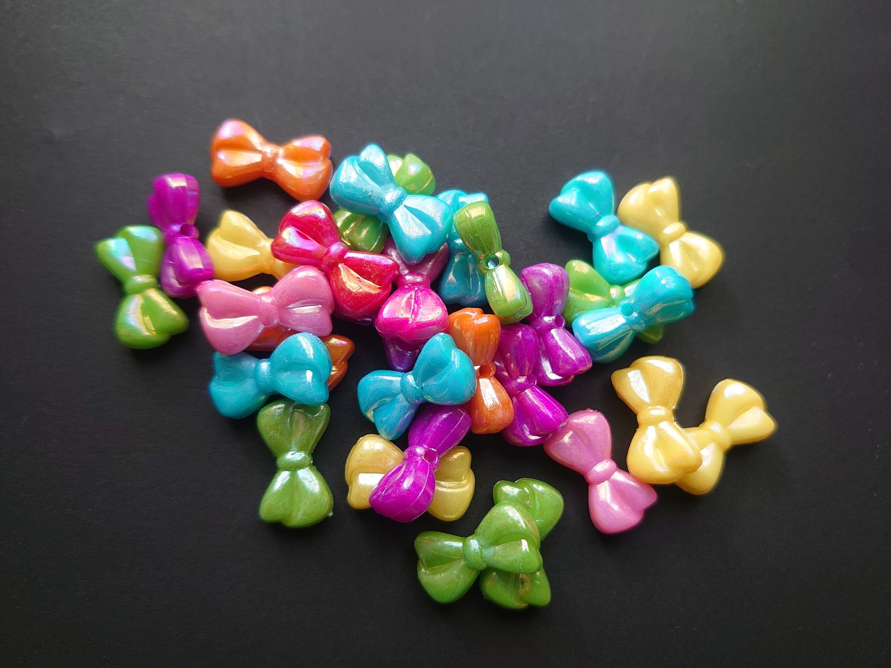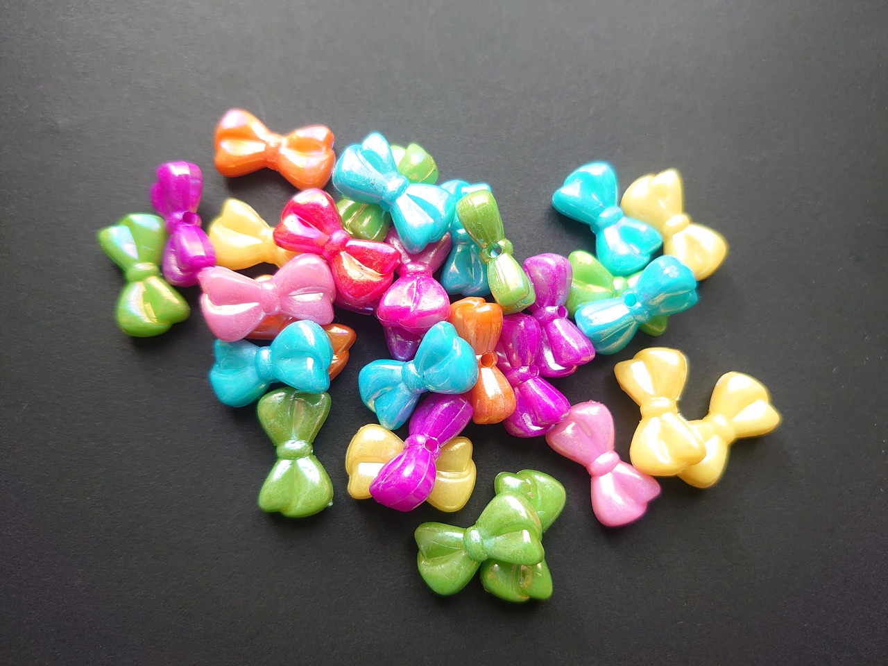 【値下げ在庫限り】アクリル オーロラ リボン ビーズ ミックスカラー 30個