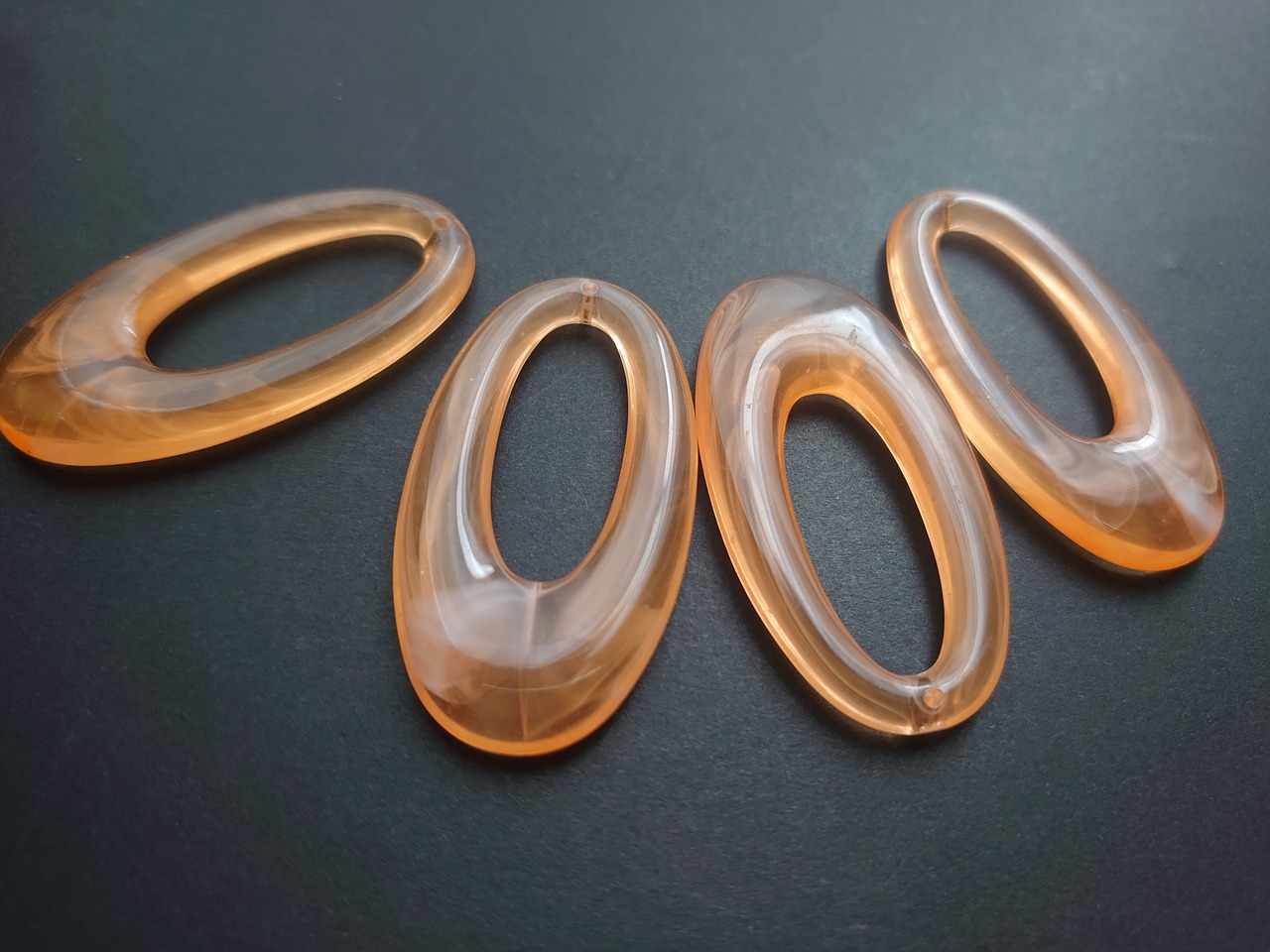 【値下げ在庫限り】アクリル マーブル オーバル 天然石風 オレンジ 1つ穴 2個