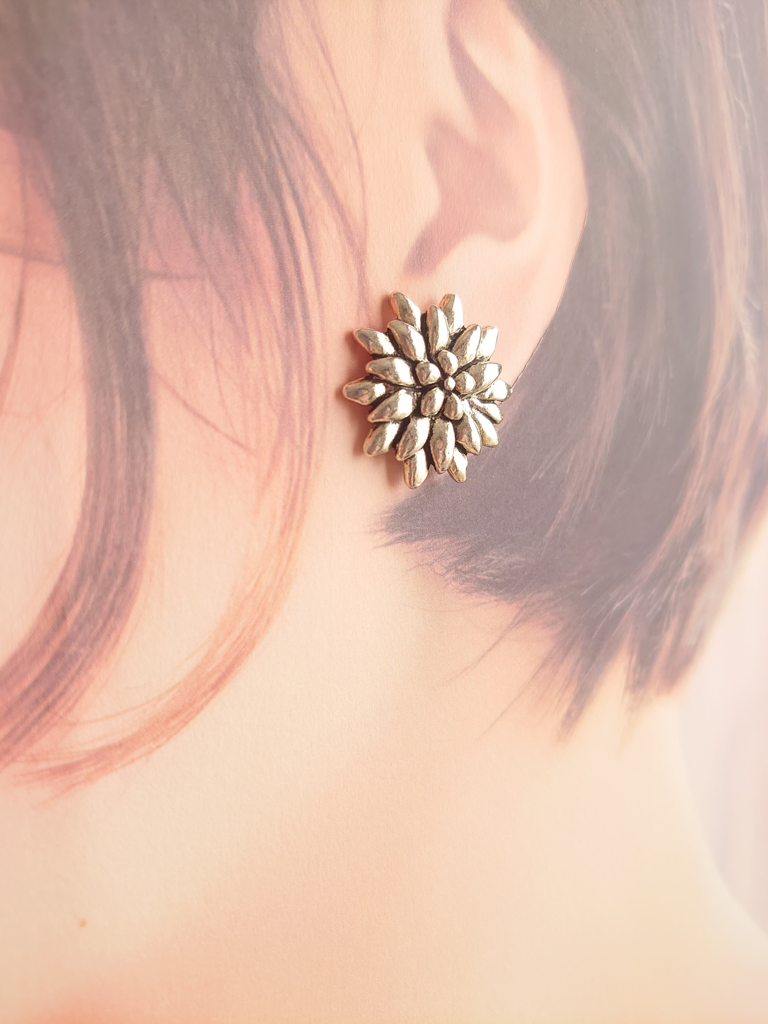 アンティーク調ロジウム色 フラワー ガラスビーズ 2WAY イヤリング / PohonhandmadeJewelry f-00