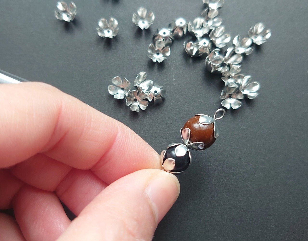 アイアン ビーズキャップ フラワー 8x4mm ロジウム色 2g