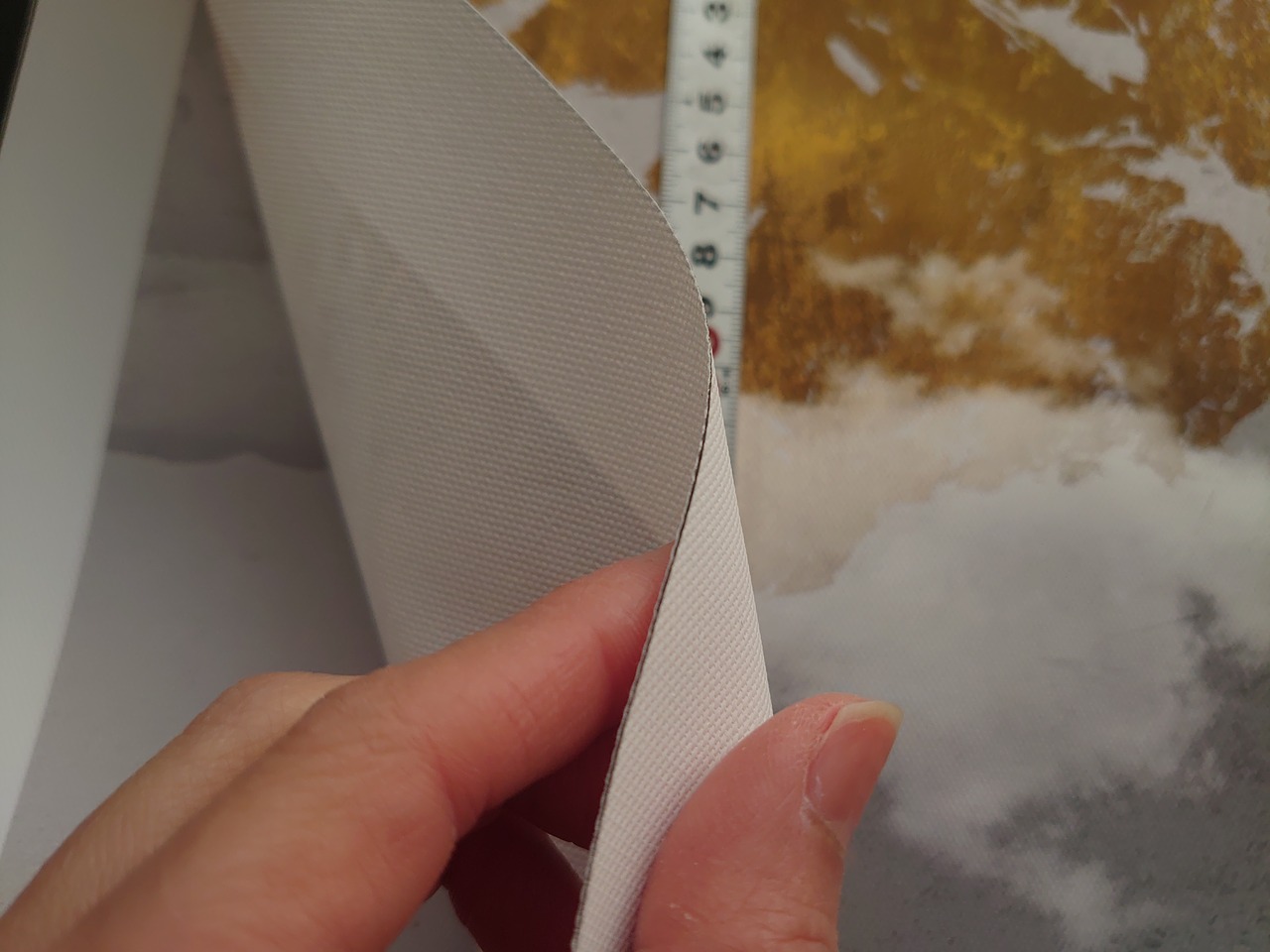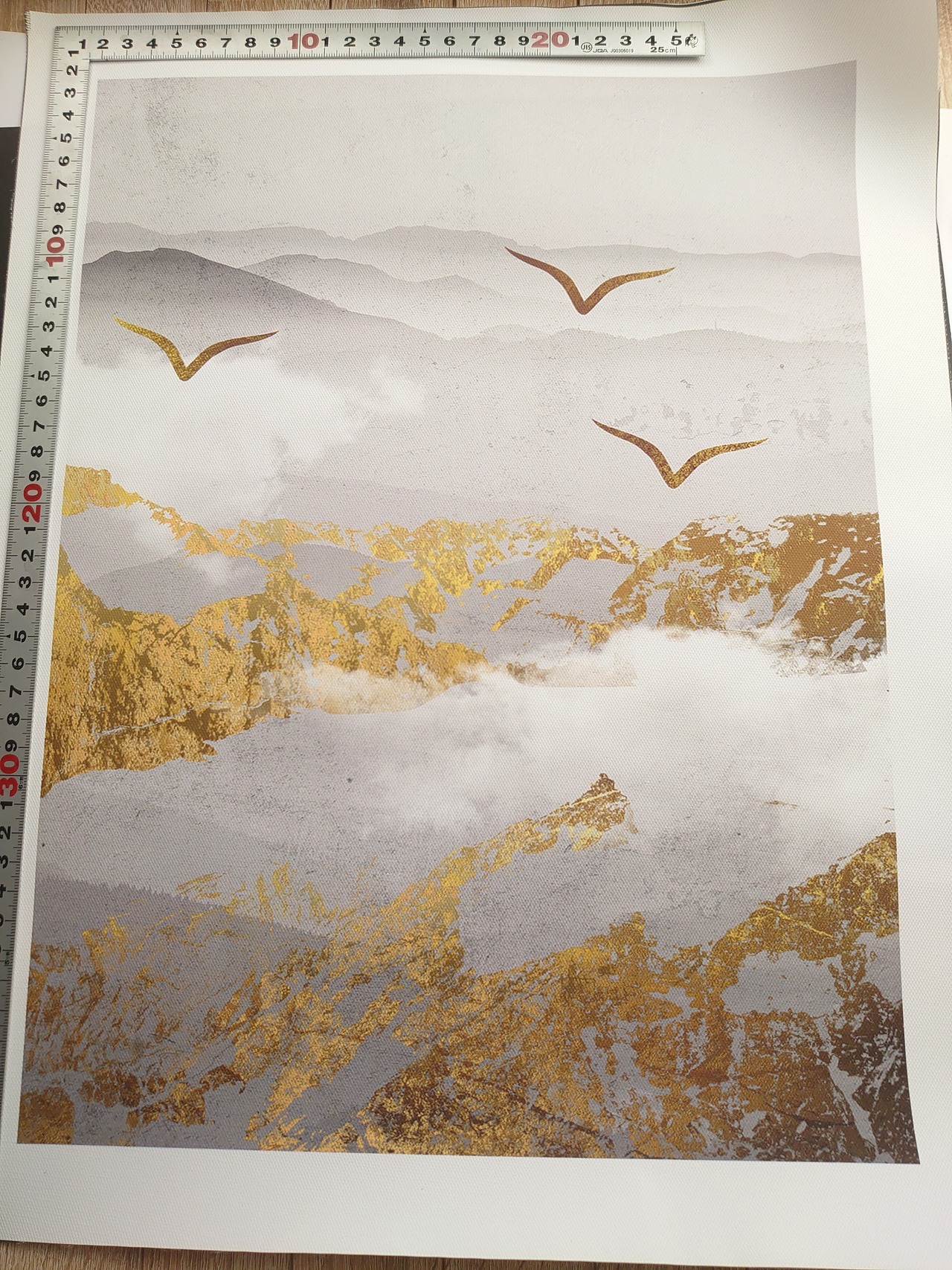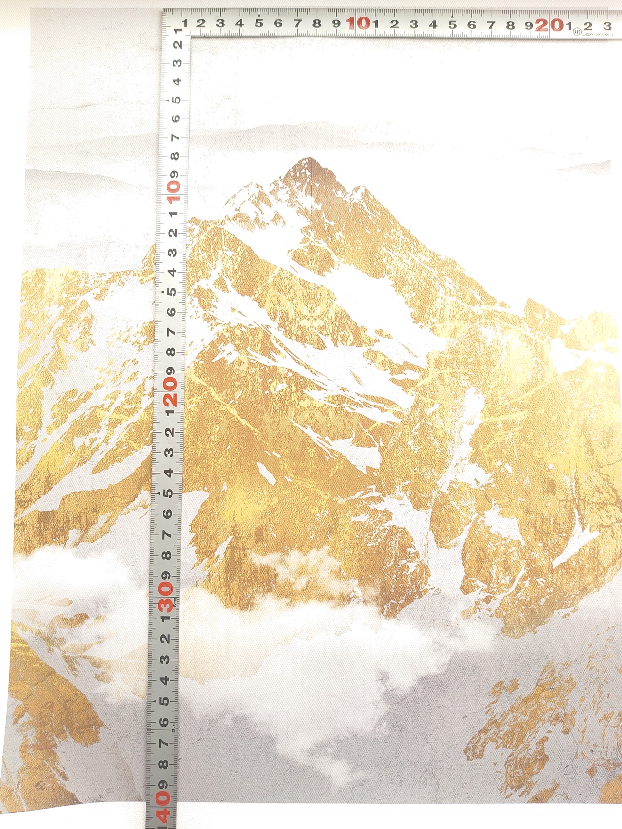 玄関には山の絵を飾ると良いと聞いたので2枚目写真はうちの玄関です。ダイソーのA3サイズの額縁に入れました。生地に印刷してある感じも最高です。