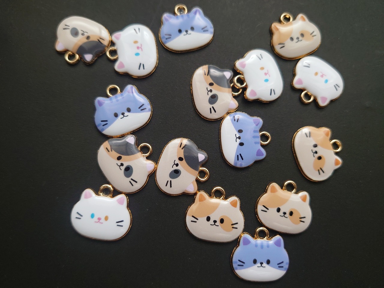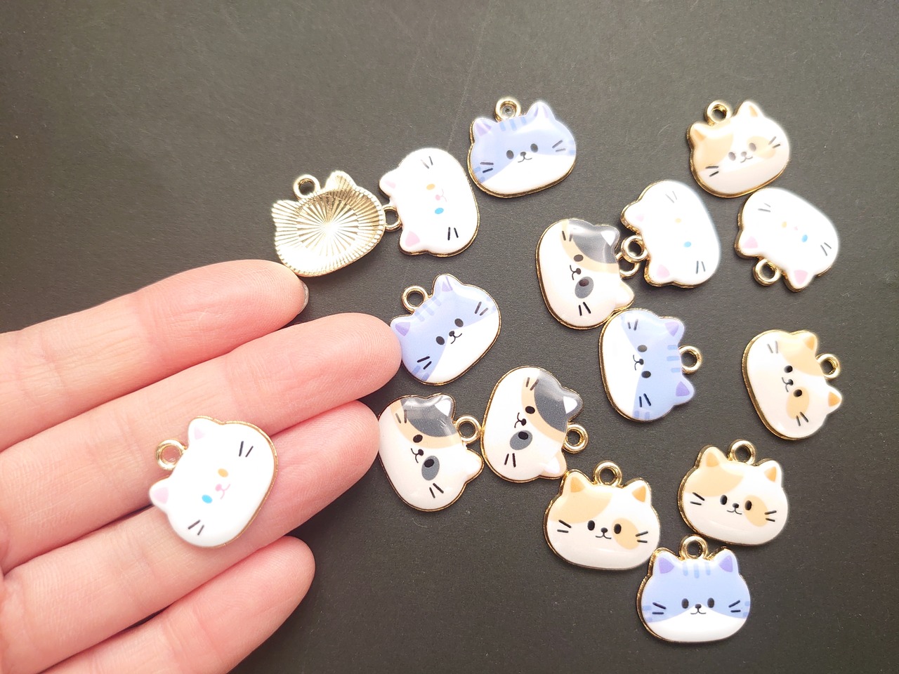合金 エナメル イラスト 猫 顔 チャーム デザインミックス 1個