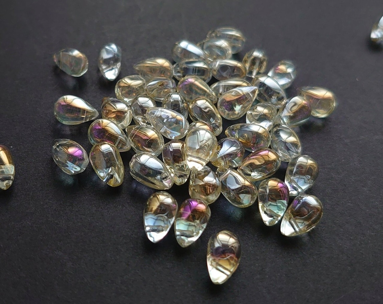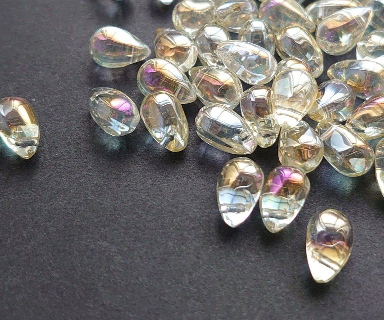 ガラス しずく ビーズ オーロラ シャンパンイエロー 5個