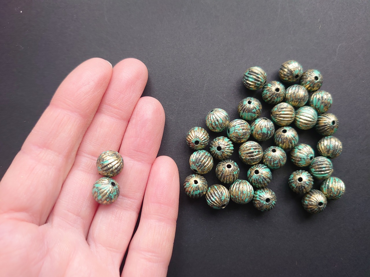 アクリル アンティーク調 水色 ゴールド色 メロン ビーズ 9~10mm 20個