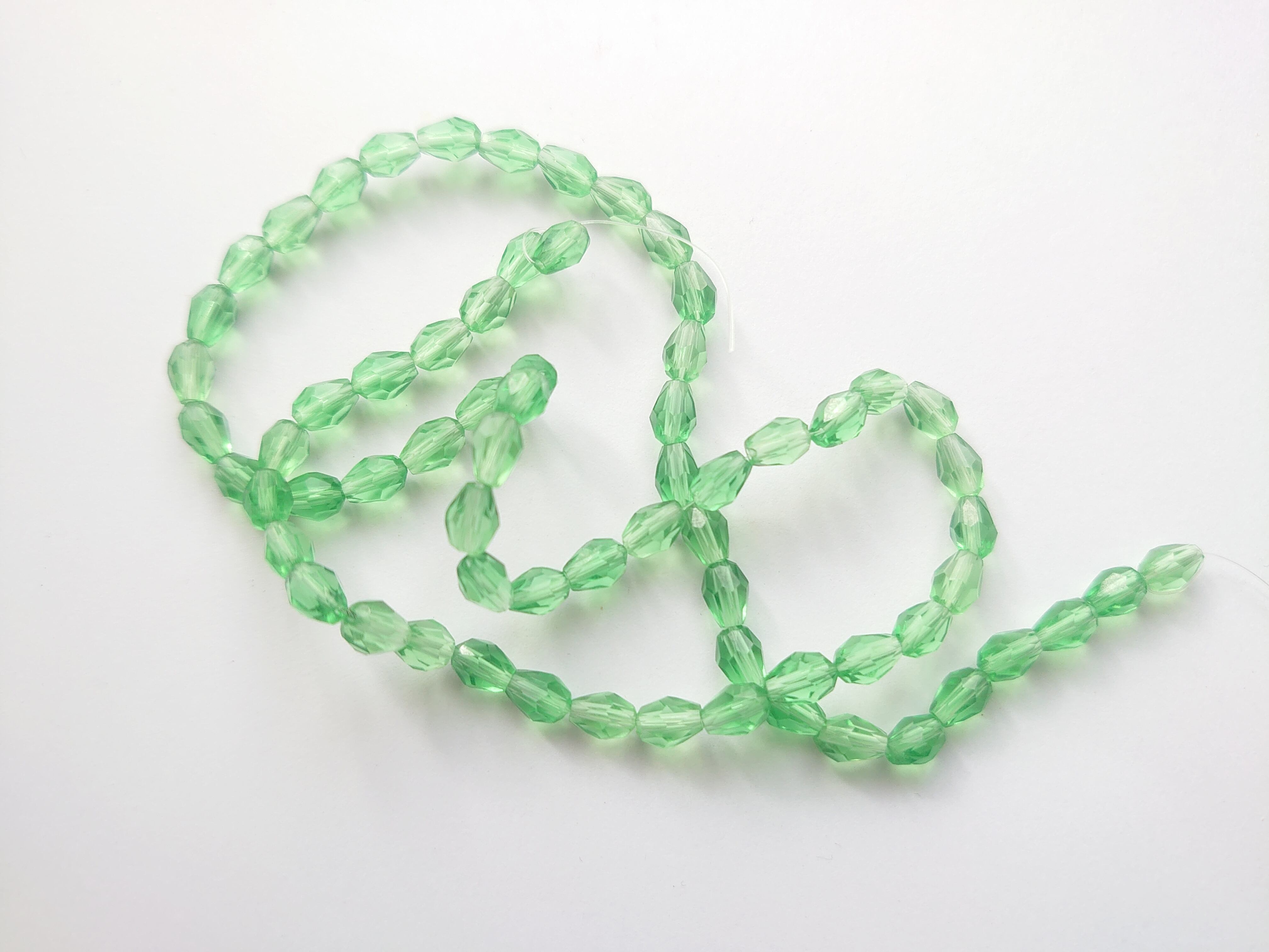 ガラスビーズ 多面カット しずく 6x4mm グリーン 10個