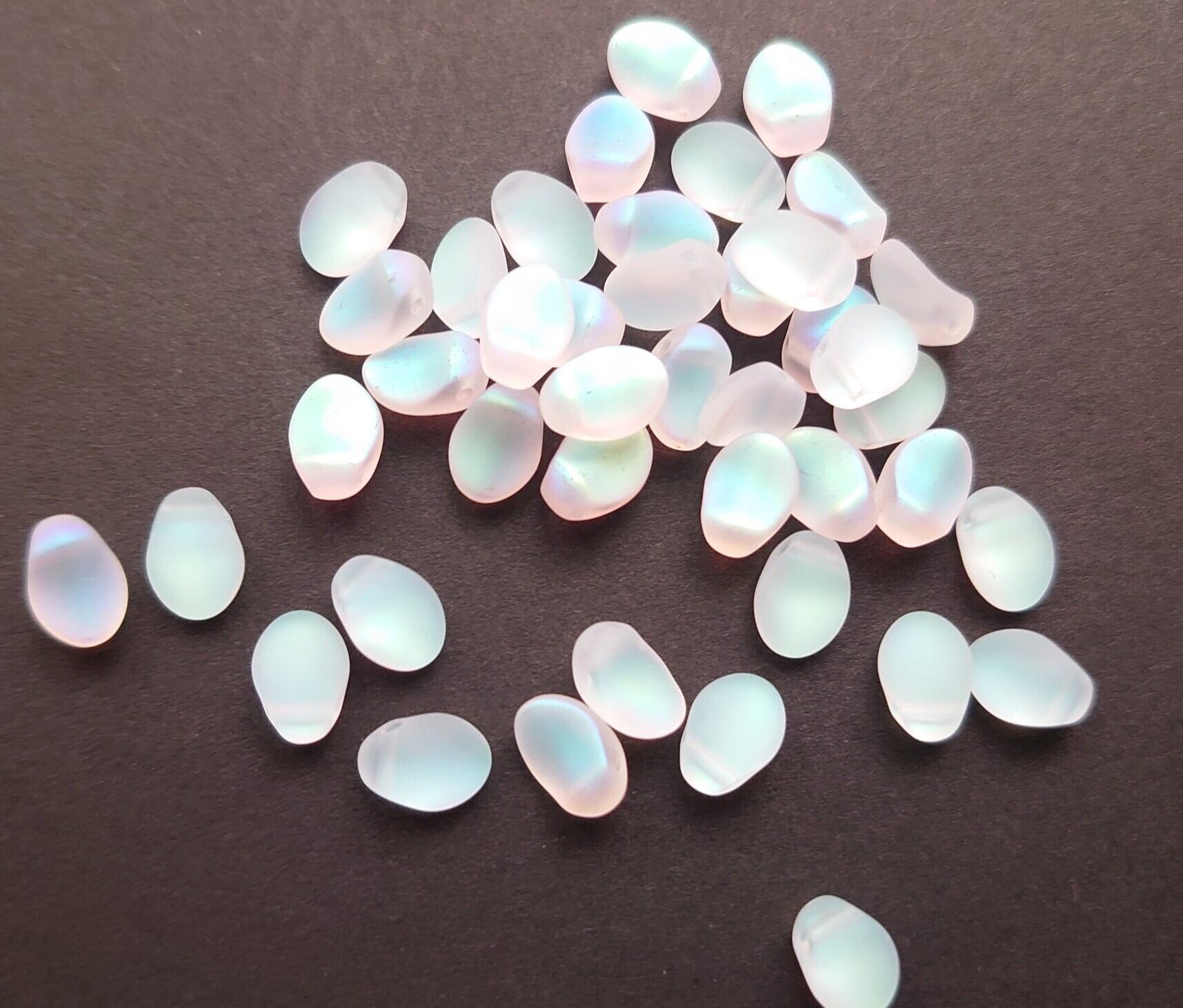 ガラス 花びら ビーズ オーバル グリッターパウダー オーロラ ホワイトクリア 3個