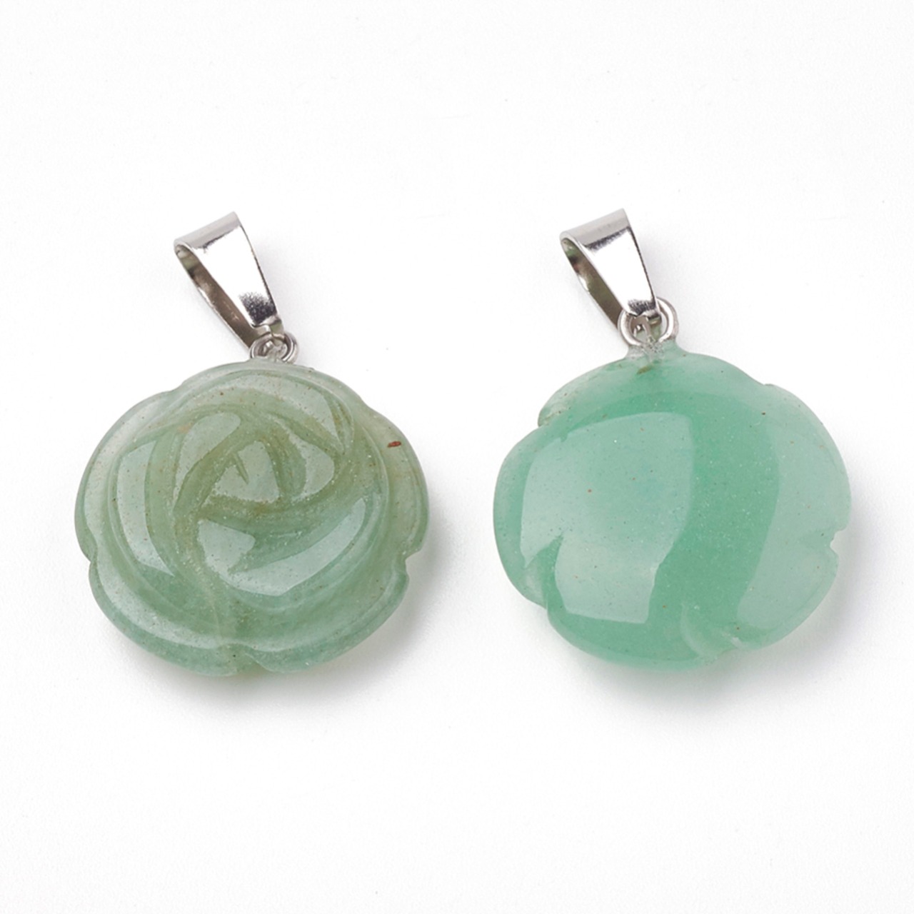 グリーンアベンチュリン フラワー ペンダントトップ ステンレス 1個