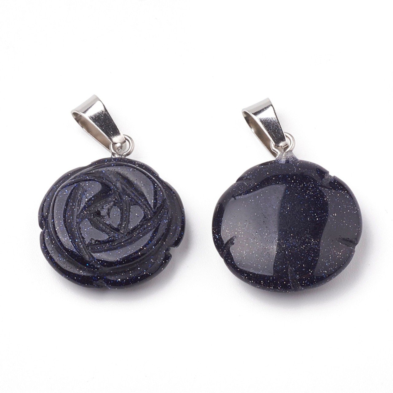 ブルーゴールドストーン フラワー ペンダントトップ ステンレス 1個