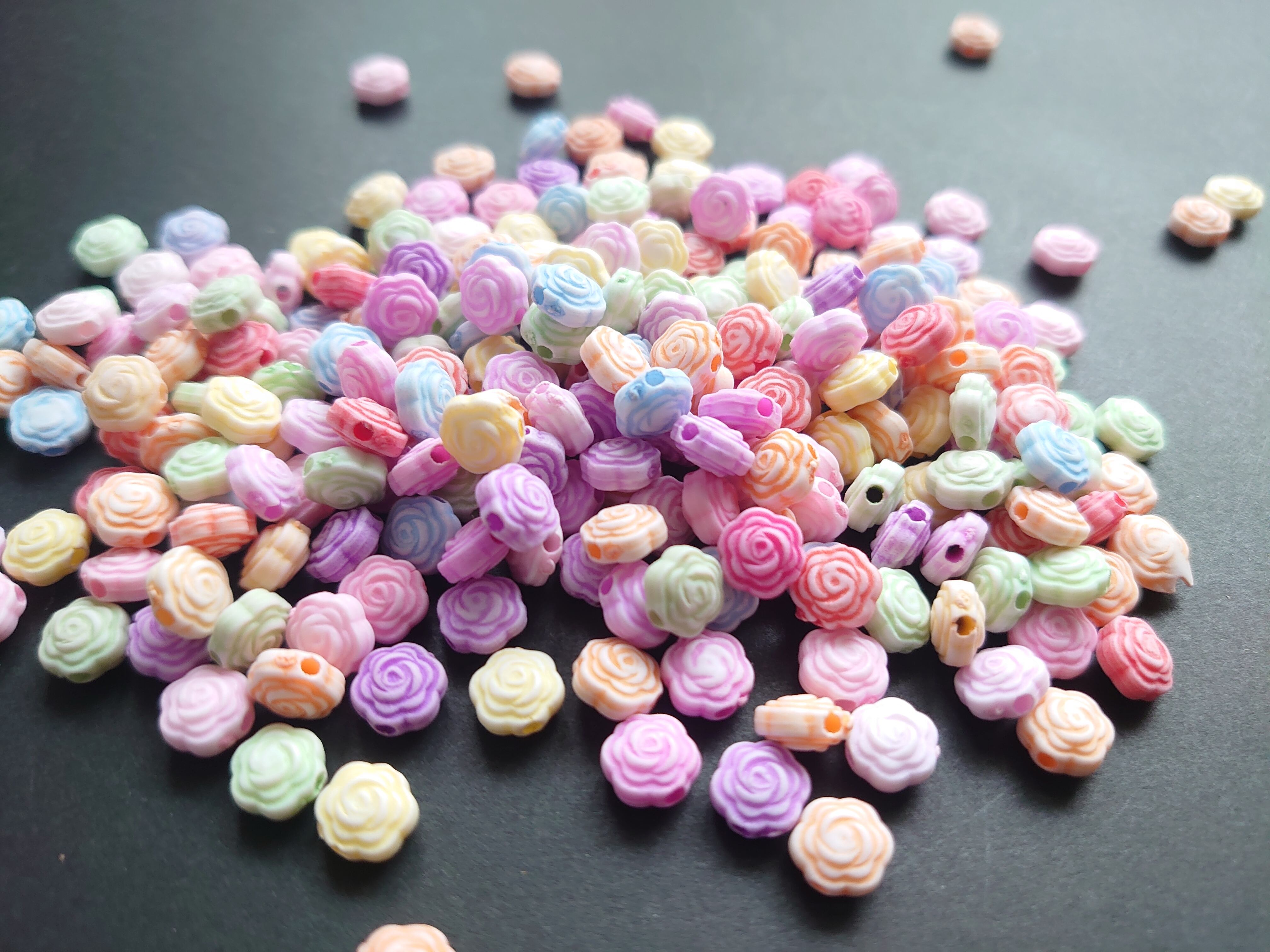 100個【値下げ在庫限り】アクリル バラ ビーズ フラット