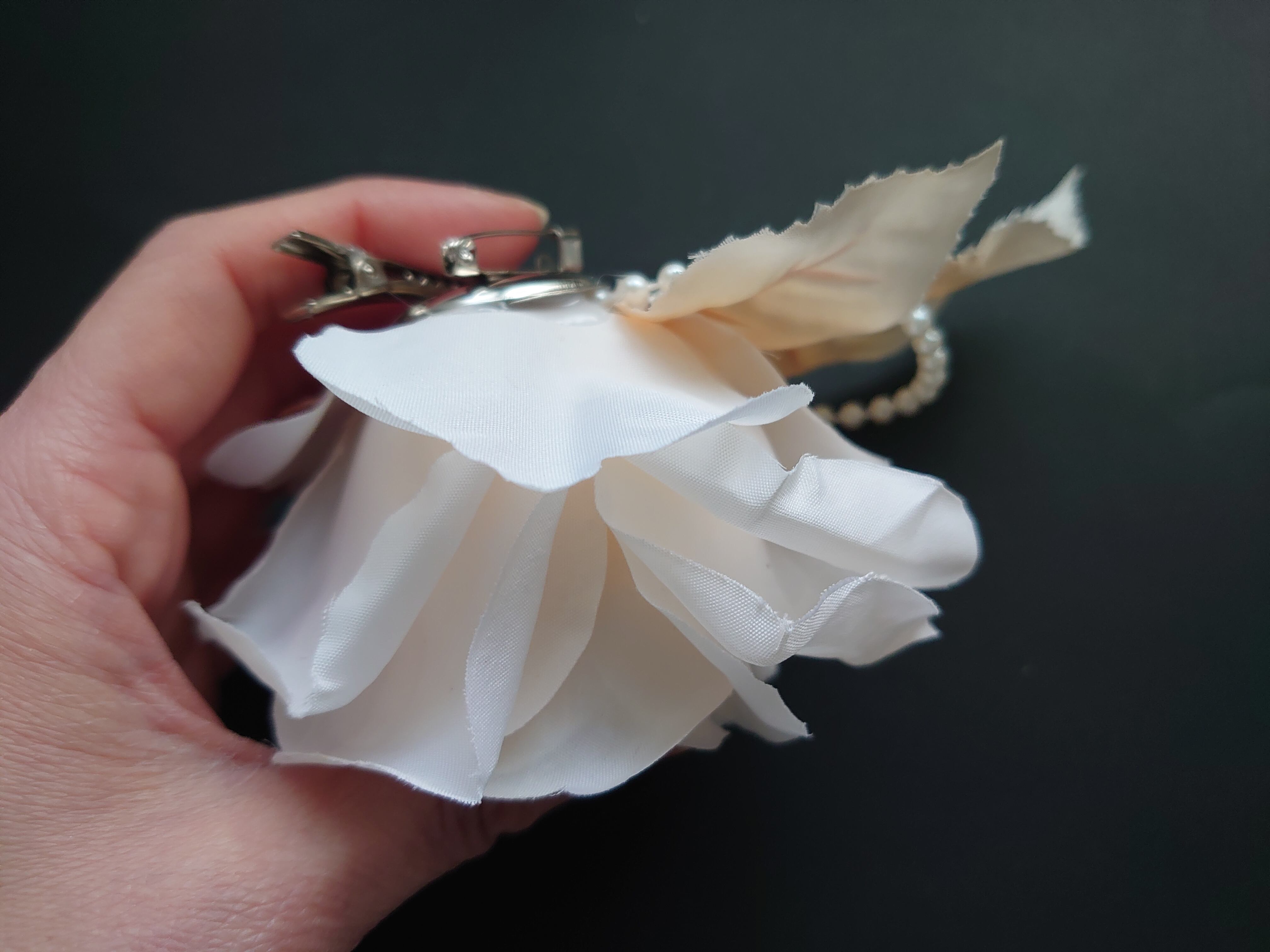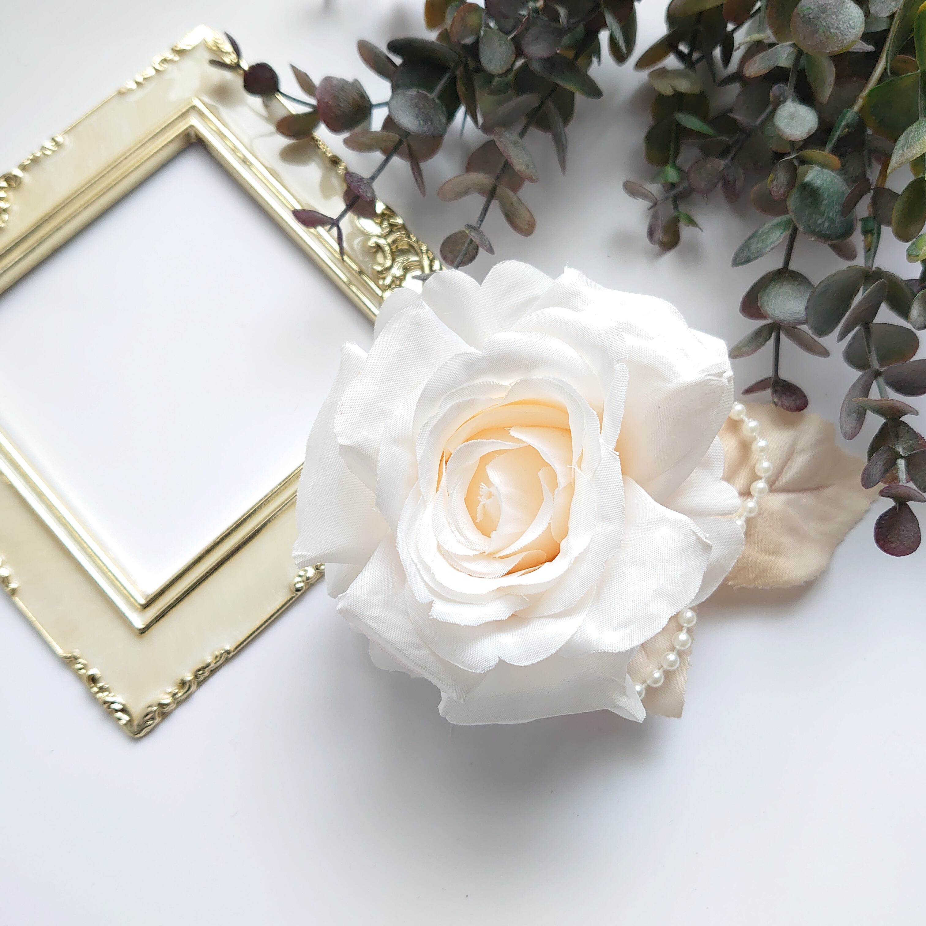 バラ パール コサージュ ホワイト / PohonhandmadeJewelry
