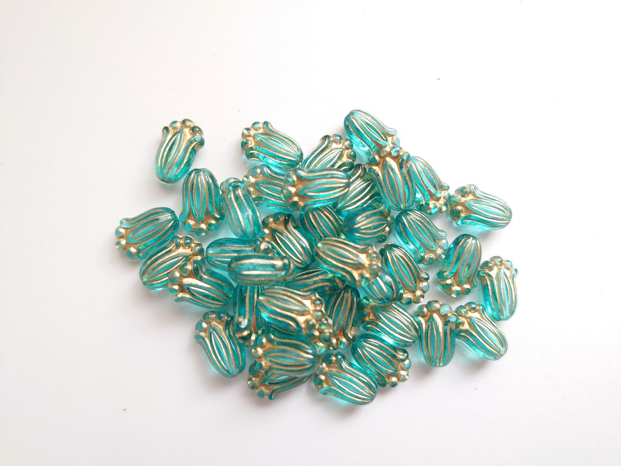 アクリル ゴールドライン フラワー ビーズ 水色 12x8x5.5mm 4個