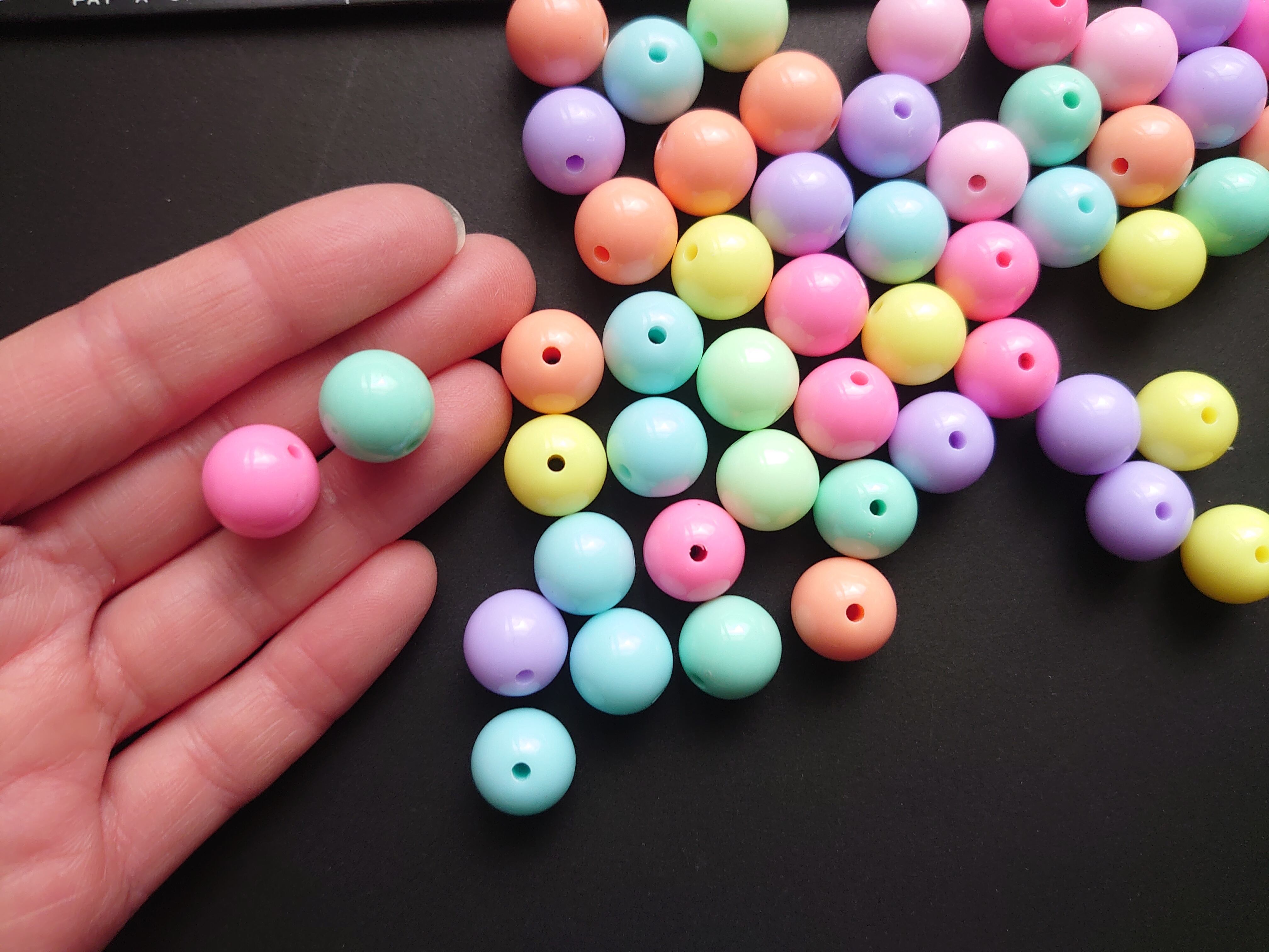 アクリル パステルカラー ラウンド ビーズ 14mm ミックスカラー 5個