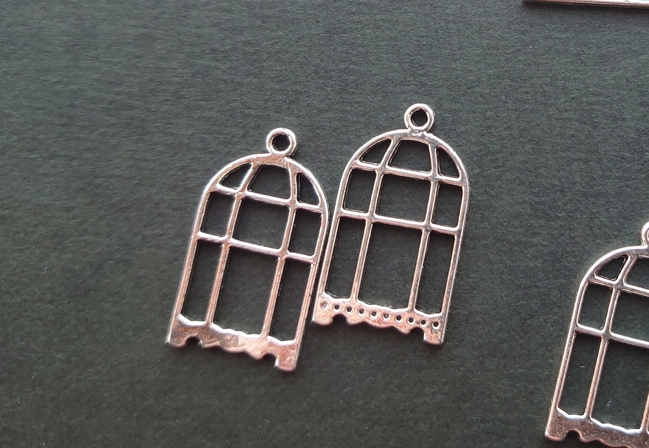 【値下げ在庫限り】合金 カゴ 鳥かご チャーム ロジウム色 10個