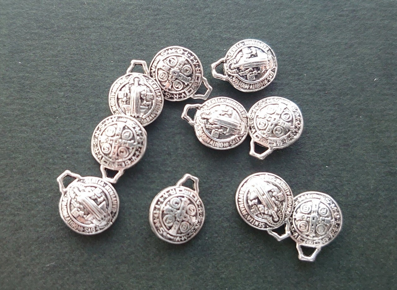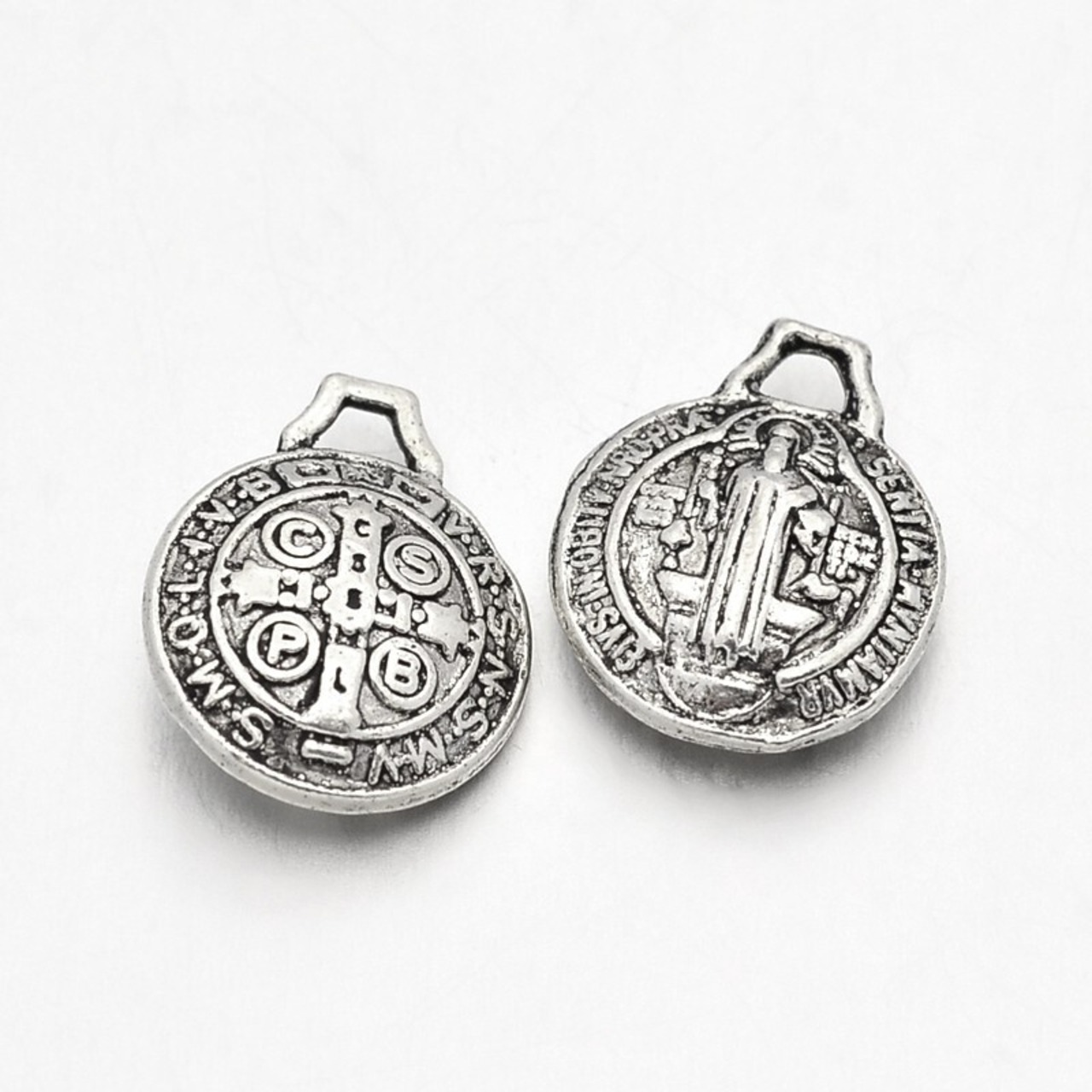 【値下げ在庫限り】聖ベネディクト チャーム アンティーク調 ロジウム色 10個