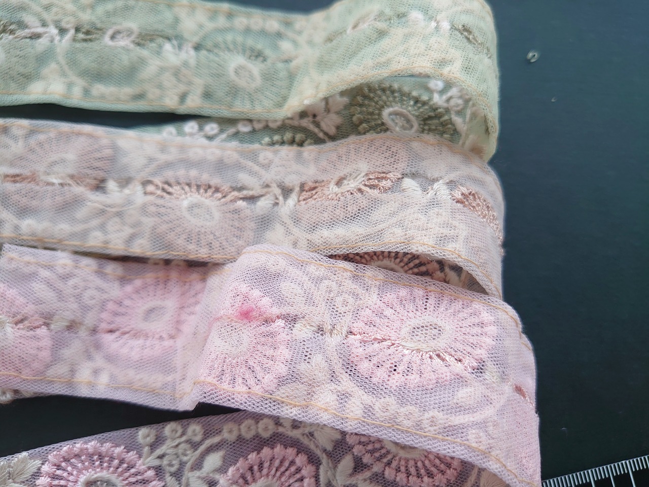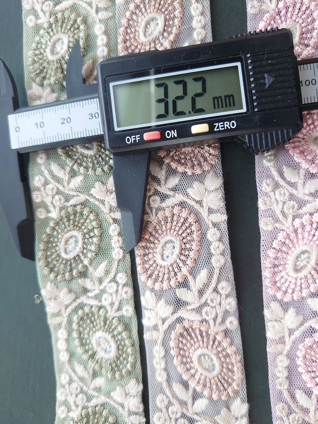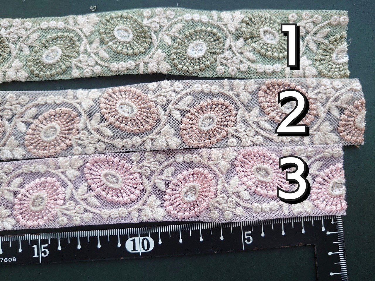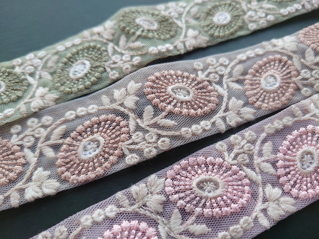 刺繍 リボン 33cm幅 ラウンドフラワー 10cm切り売り