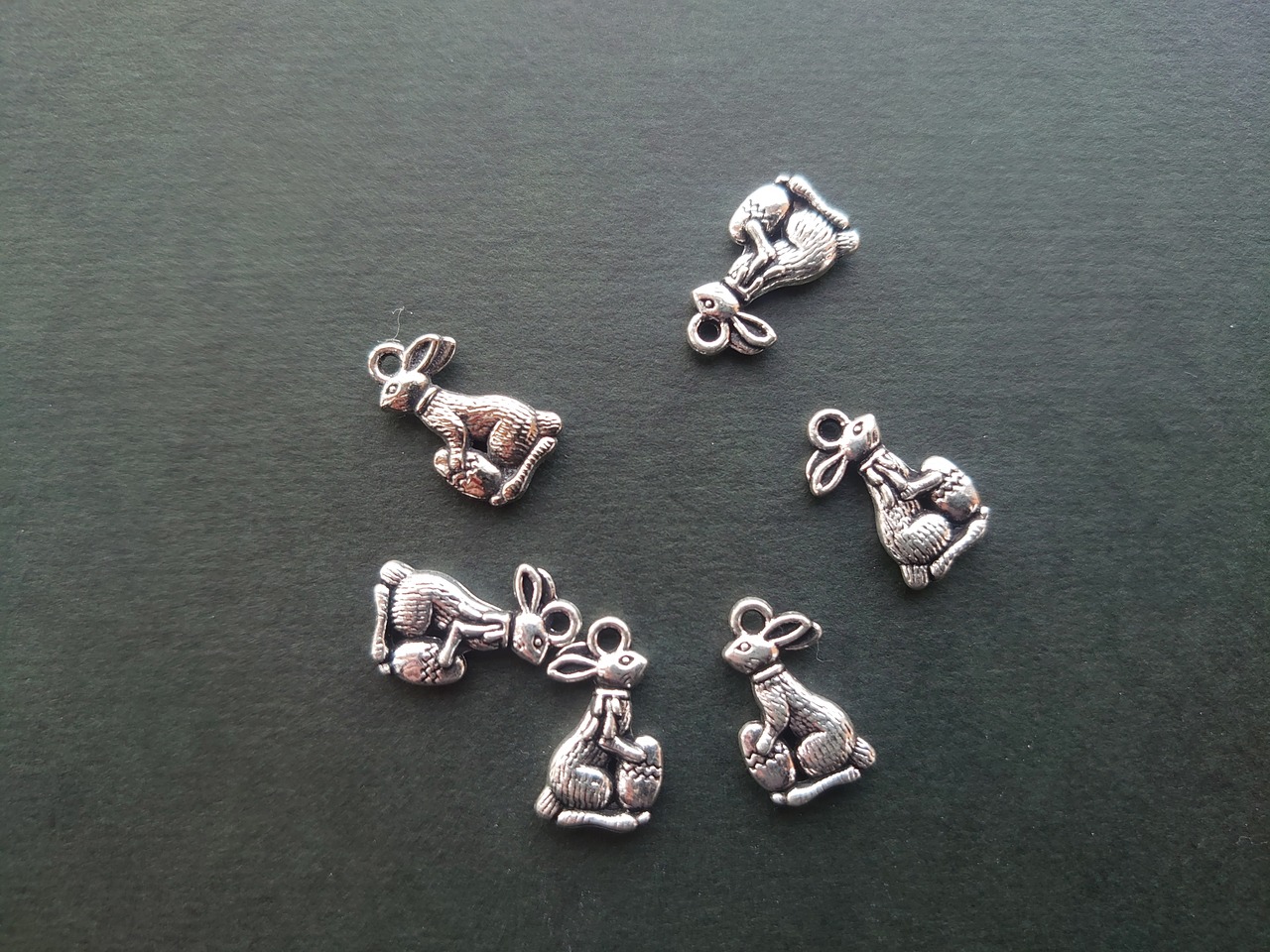【値下げ在庫限り】合金 イースター エッグ うさぎ チャーム アンティーク調 ロジウム色 3個