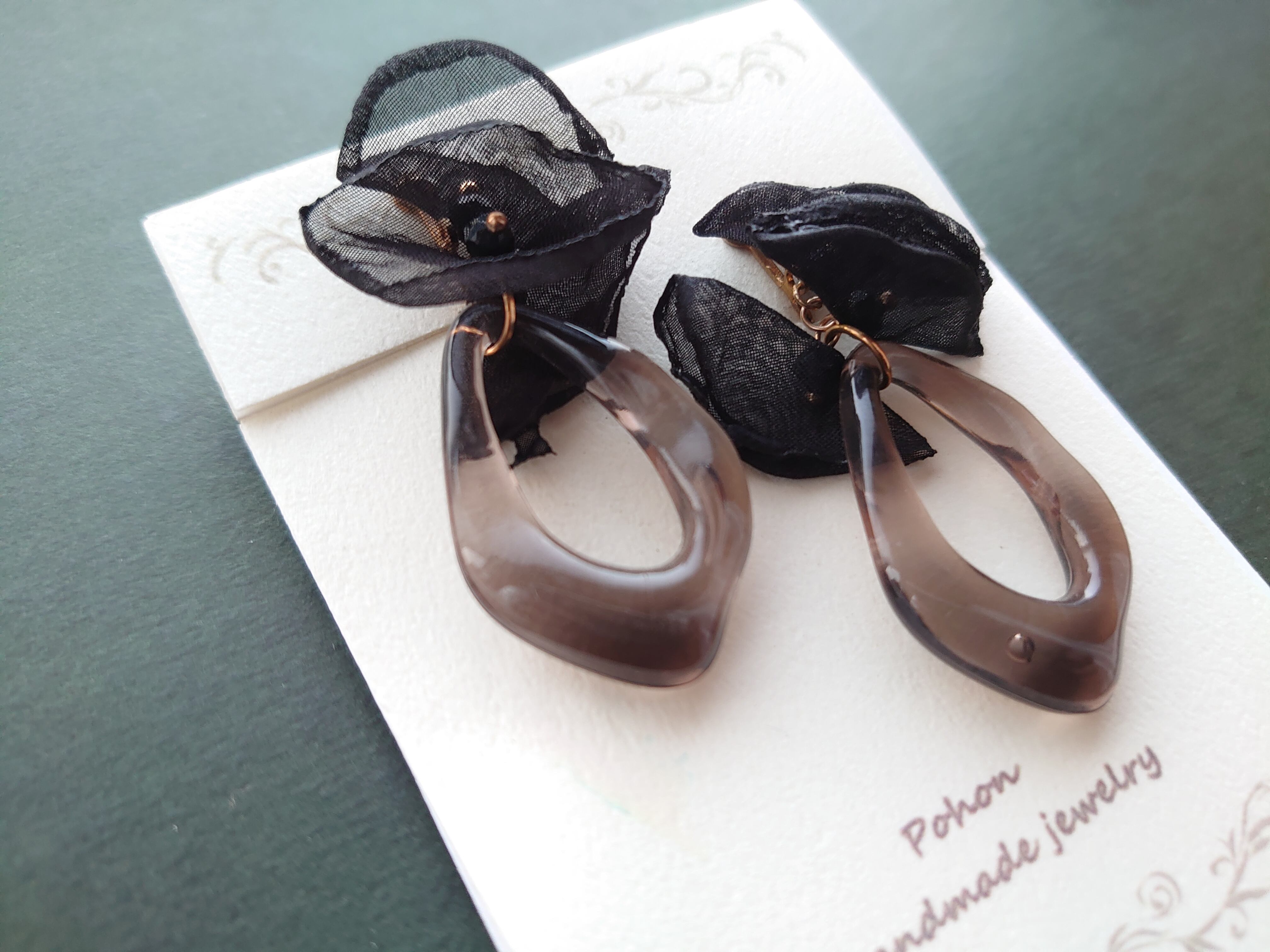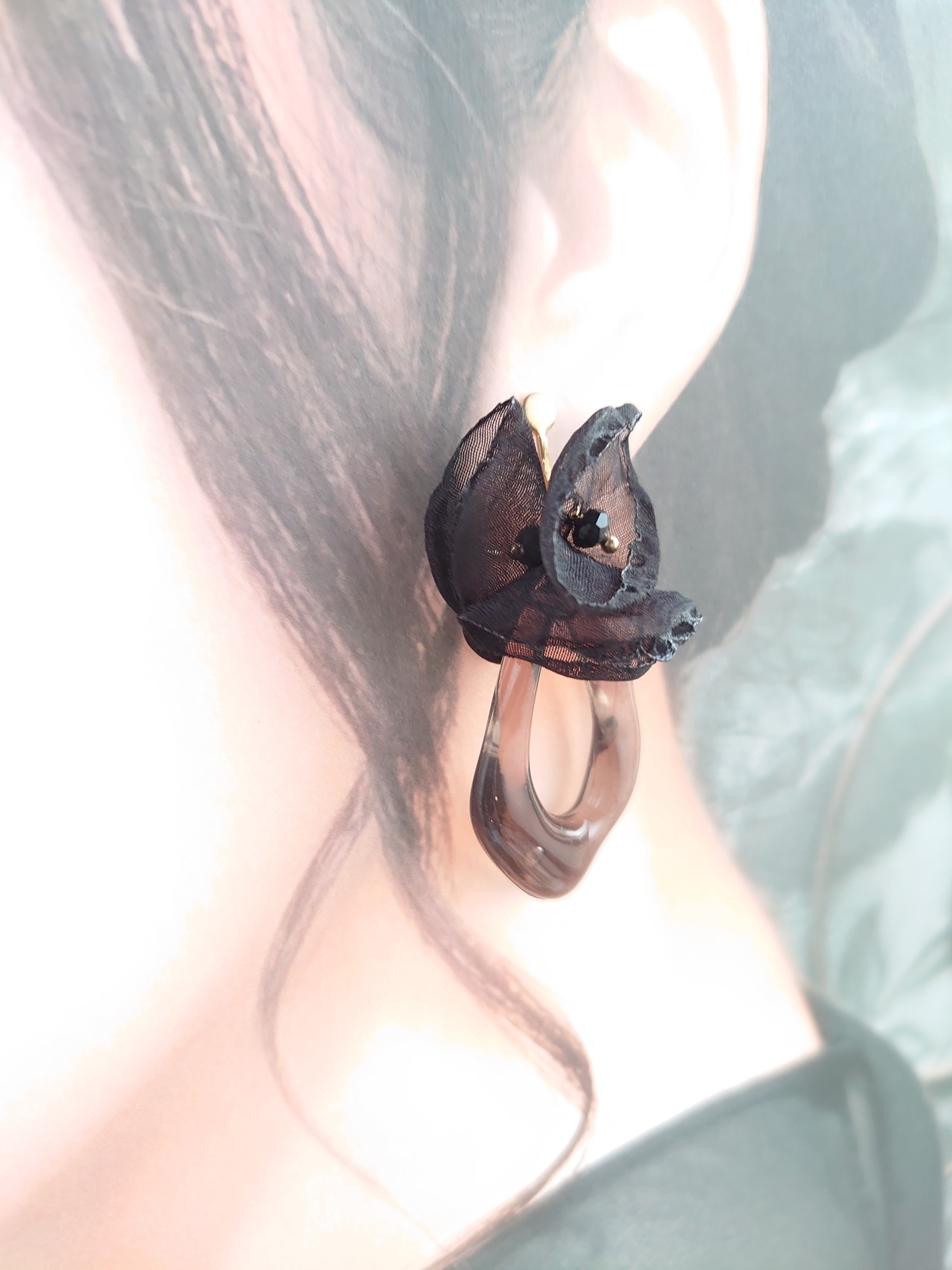 ゆがみしずく フラワー イヤリング / PohonhandmadeJewelry