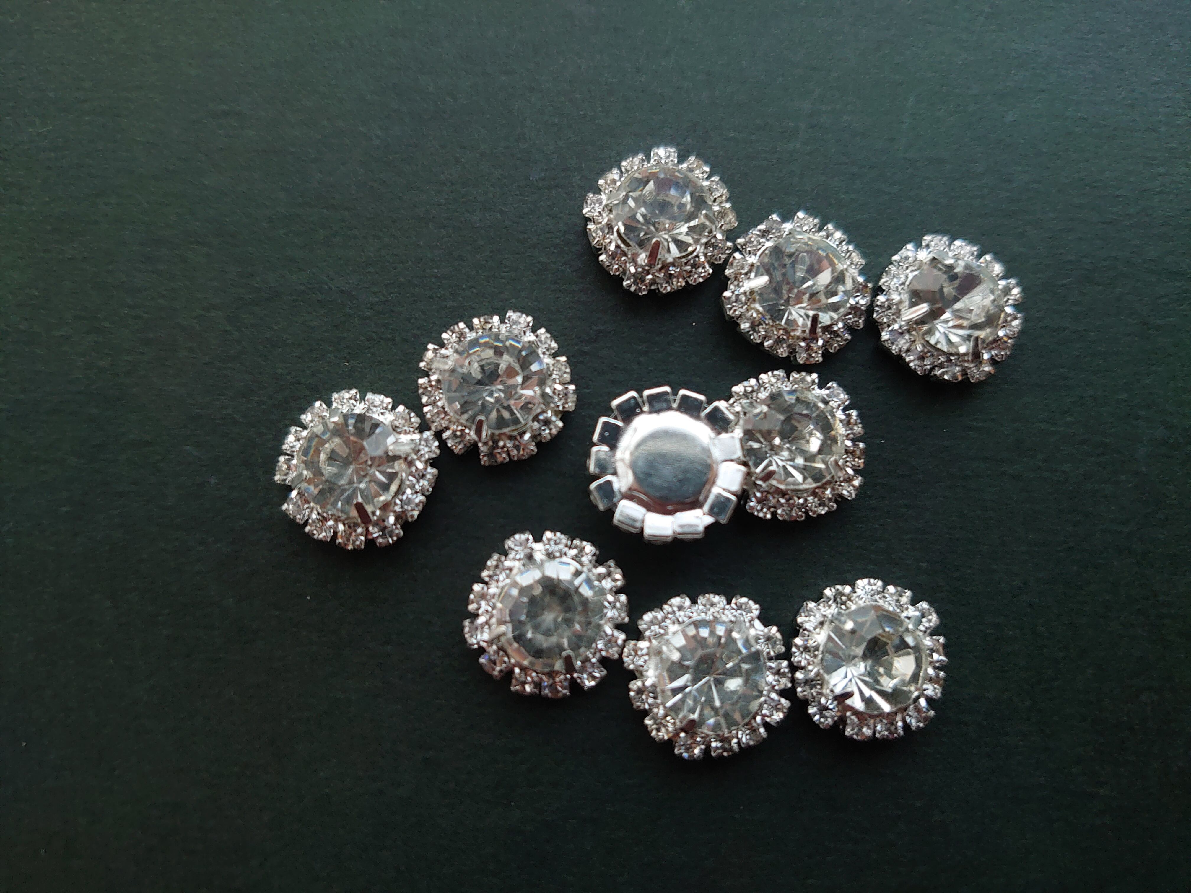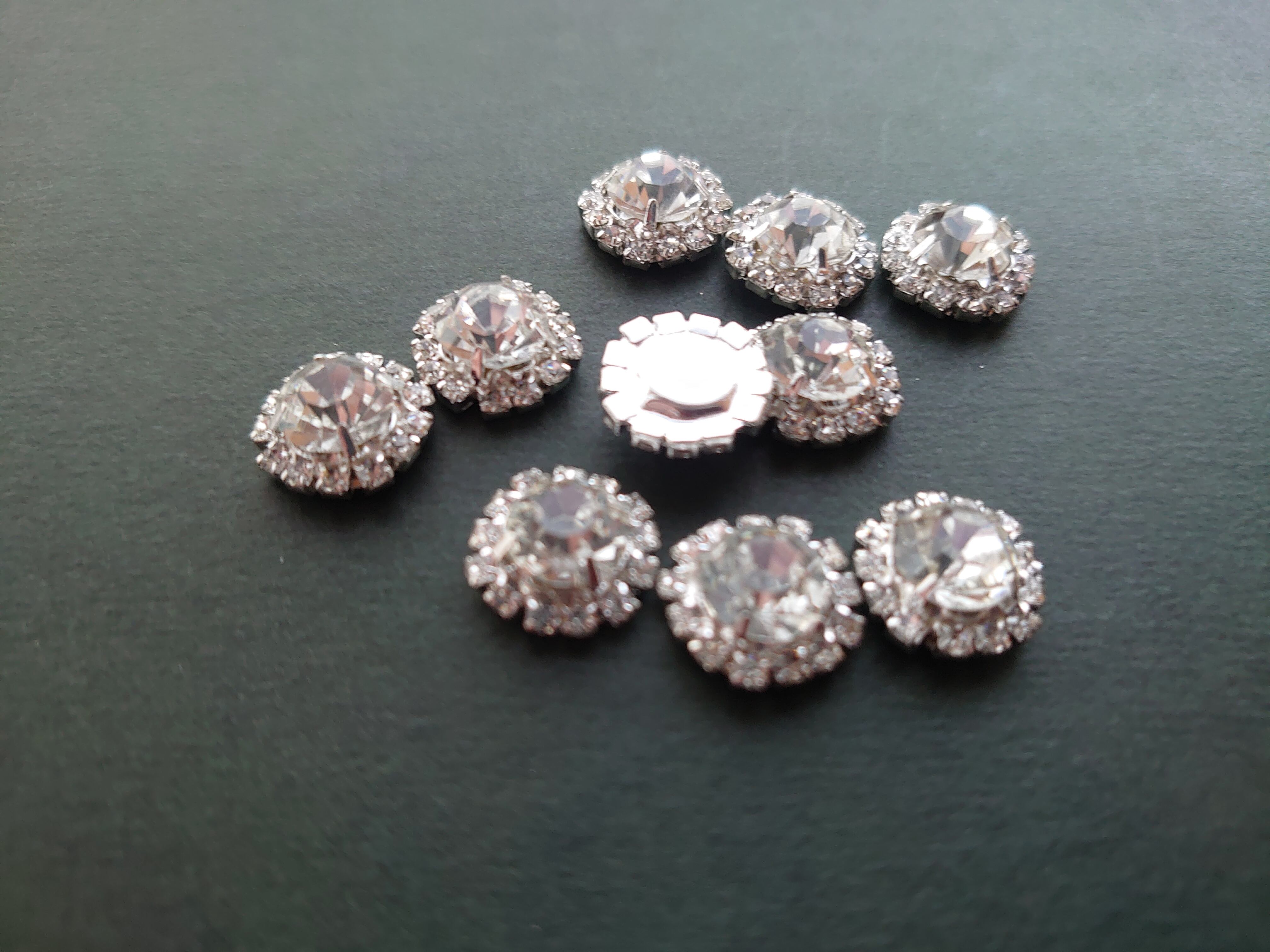 【値下げ在庫限り】真鍮 ラインストーン キラキラ ラウンド カボション シルバー色 1個