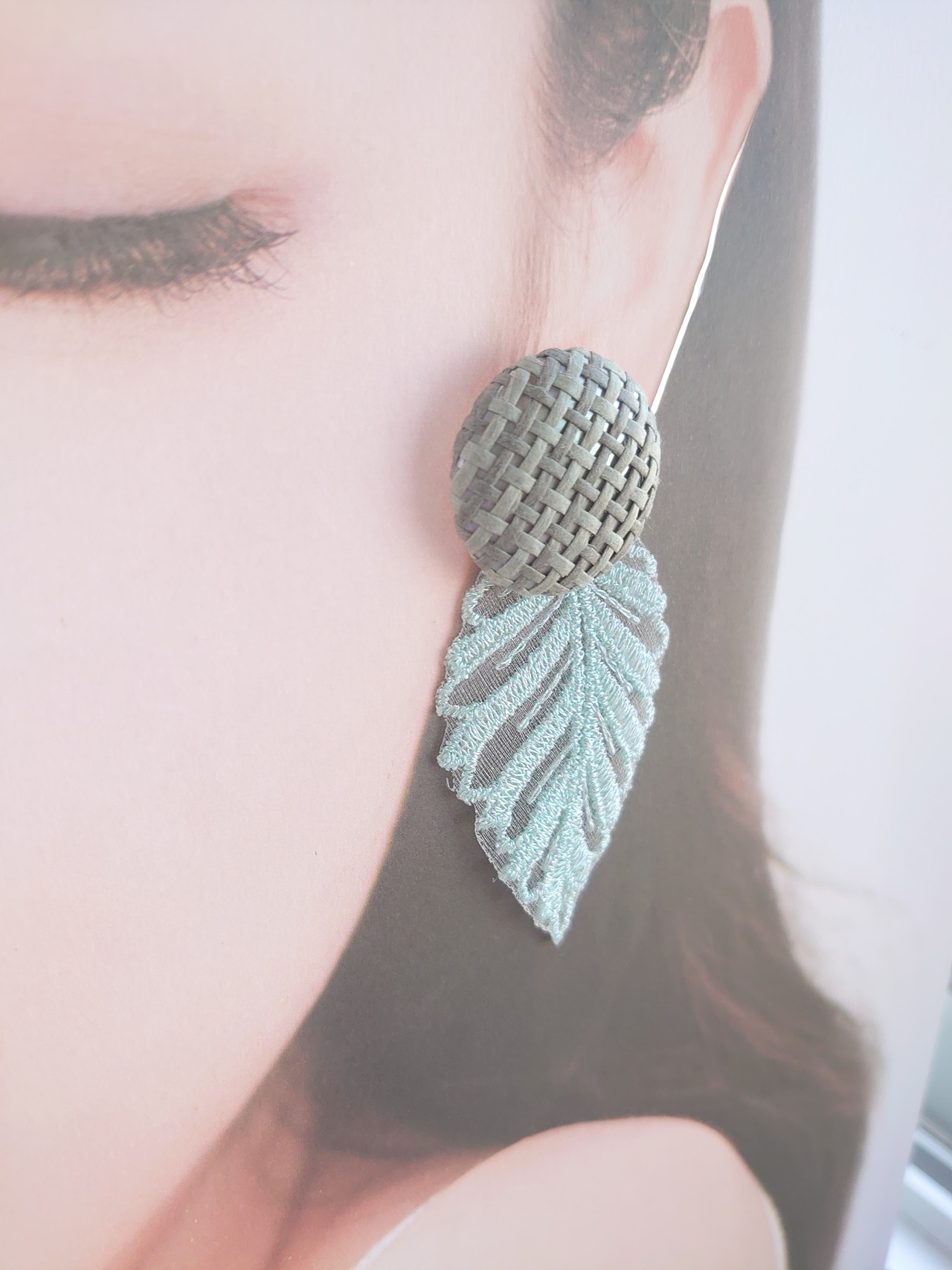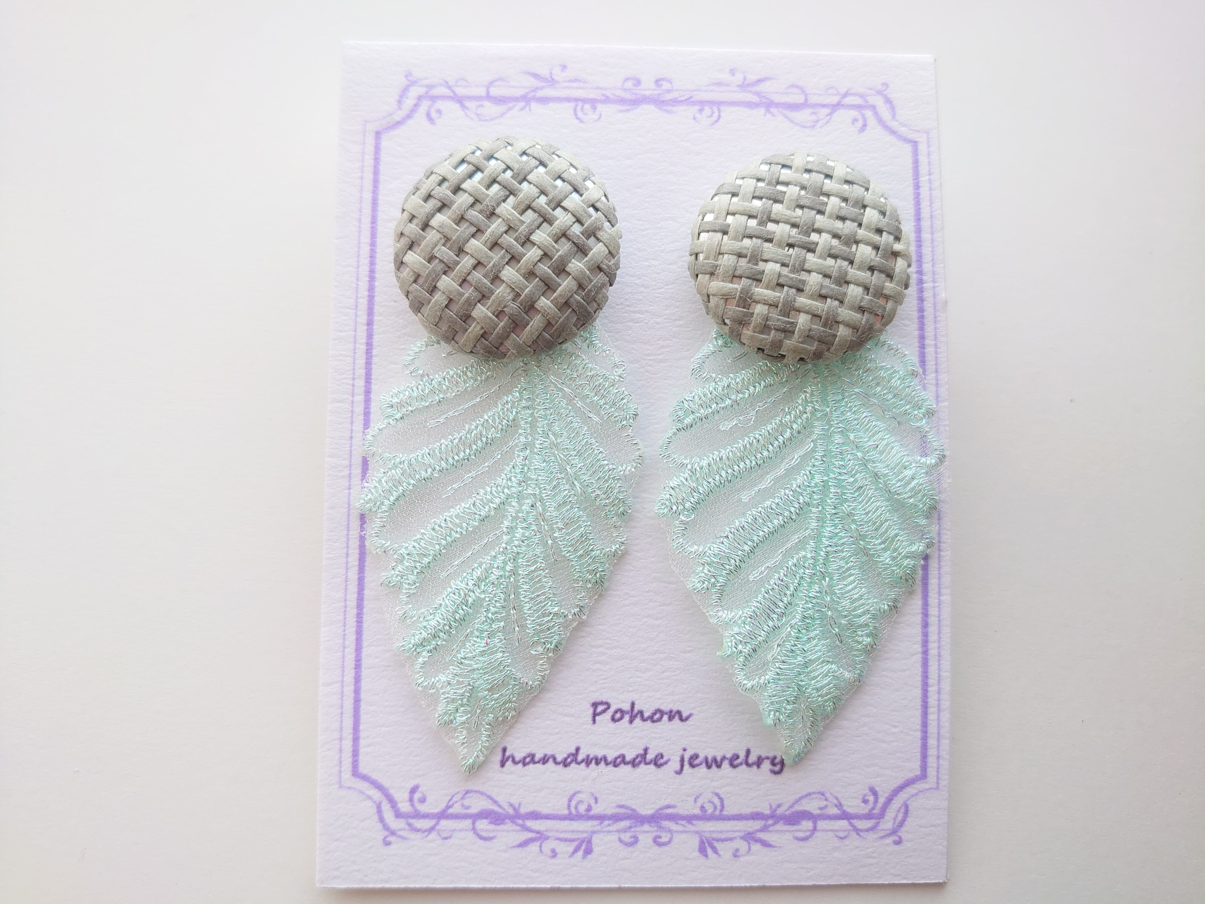 半額以下セール!レース葉っぱとくるみボタン ピアス / PohonhandmadeJewelry