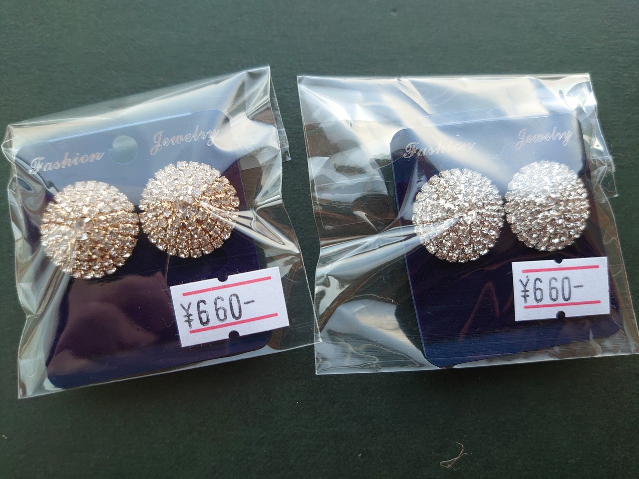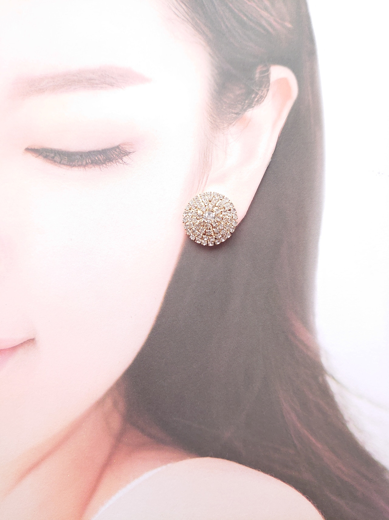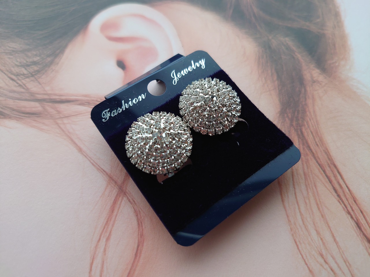 ラインストーン ラウンド 挟む イヤリング 1ペア