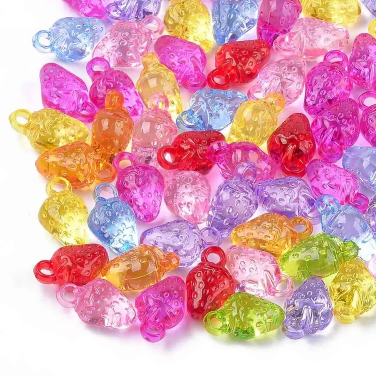 【値下げ在庫限り】アクリル クリア カラー ミックス いちご チャーム 10個