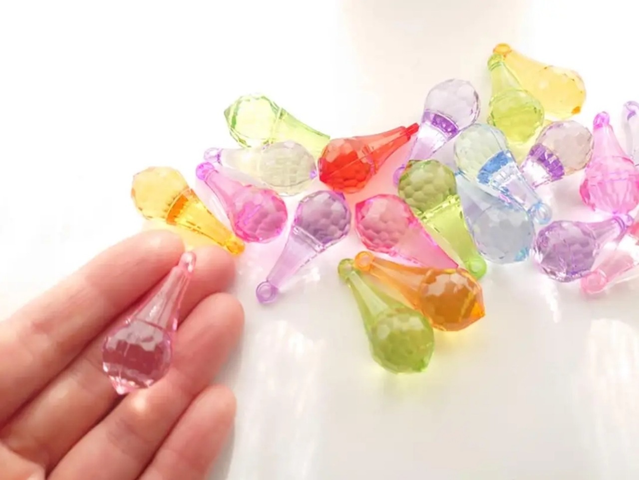 【値下げ在庫限り】アクリル 多面カット 立体しずく チャーム ミックスカラー 5個