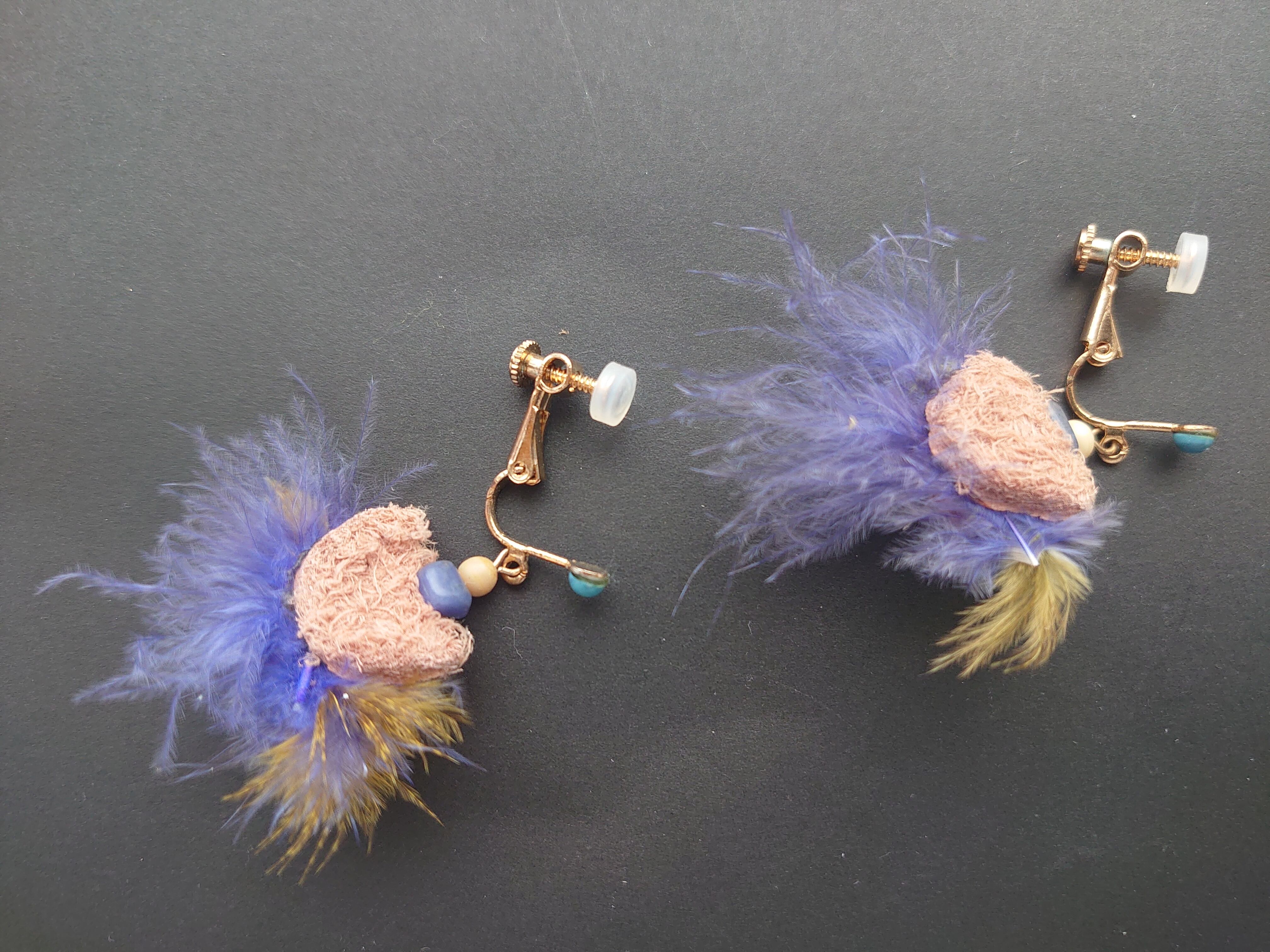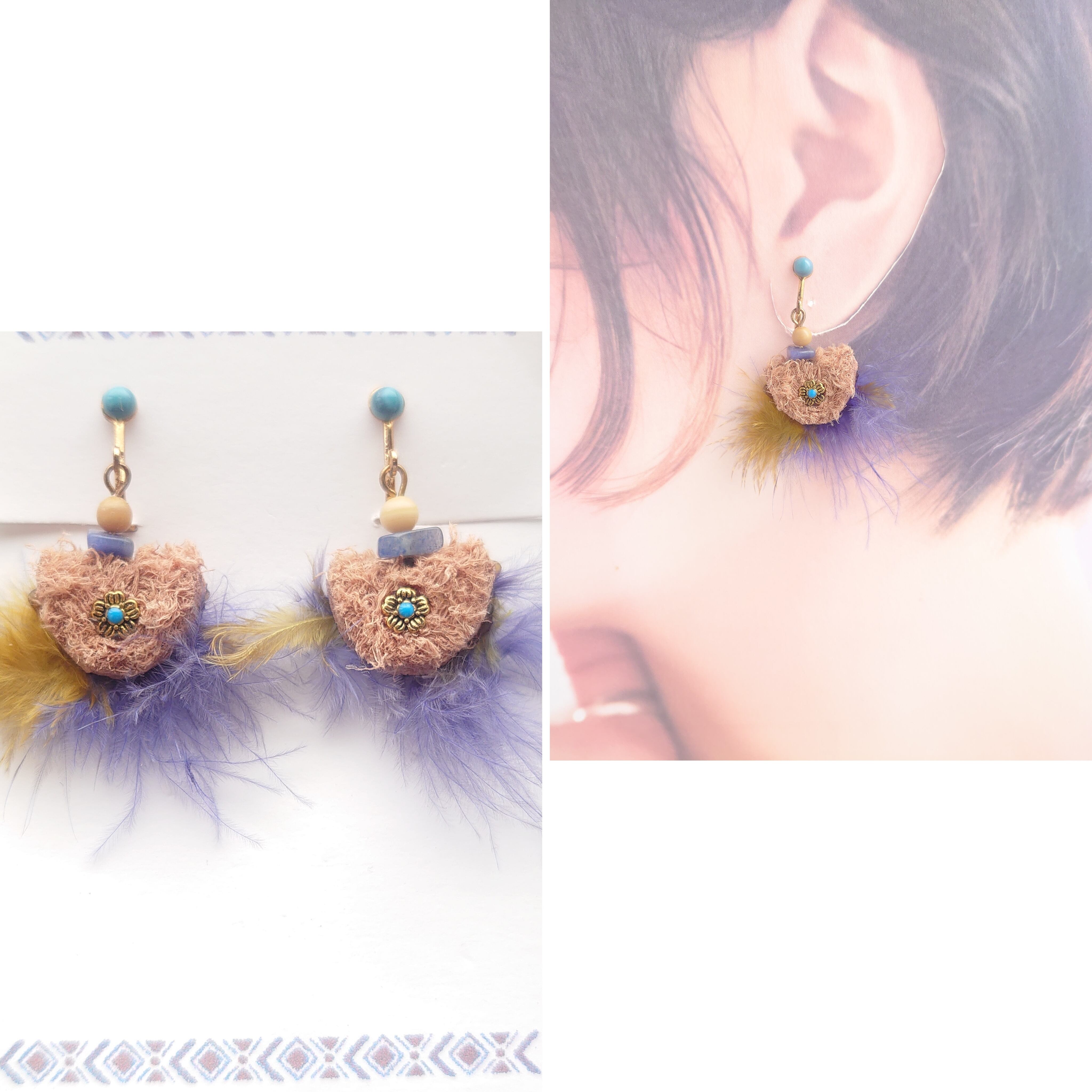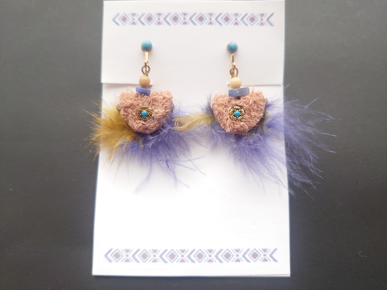 半額以下セール!エスニック レザーと羽根 フックピアス / PohonhandmadeJewelry