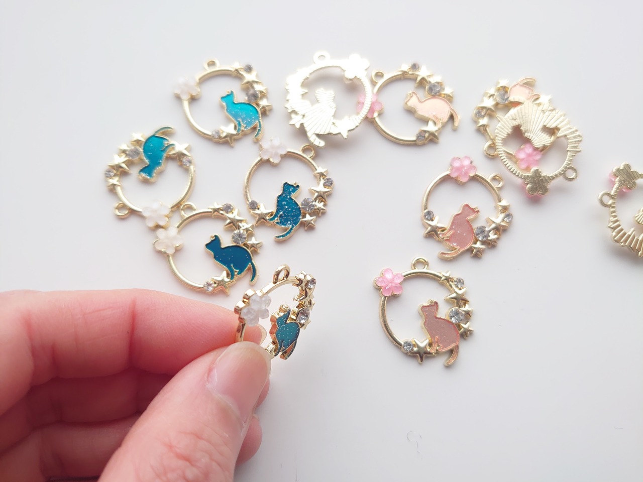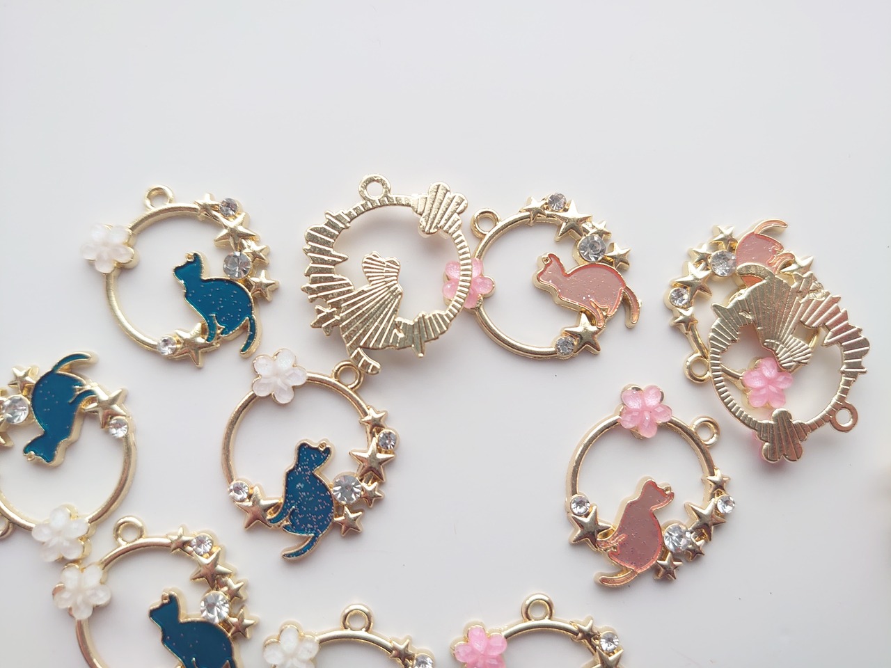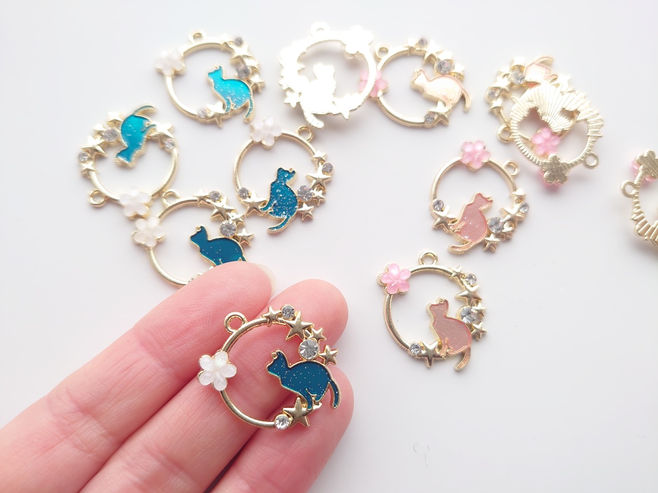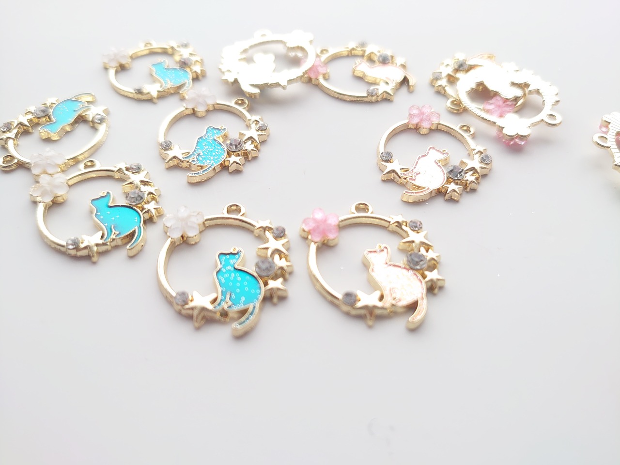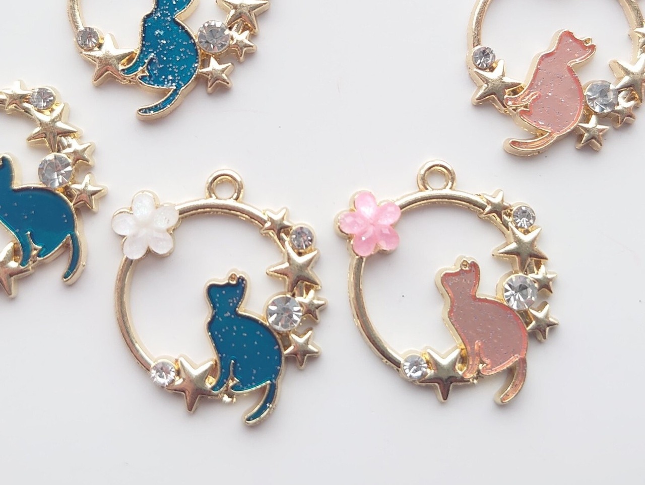 合金 エナメル 猫 フラワー 星 チャーム 1個