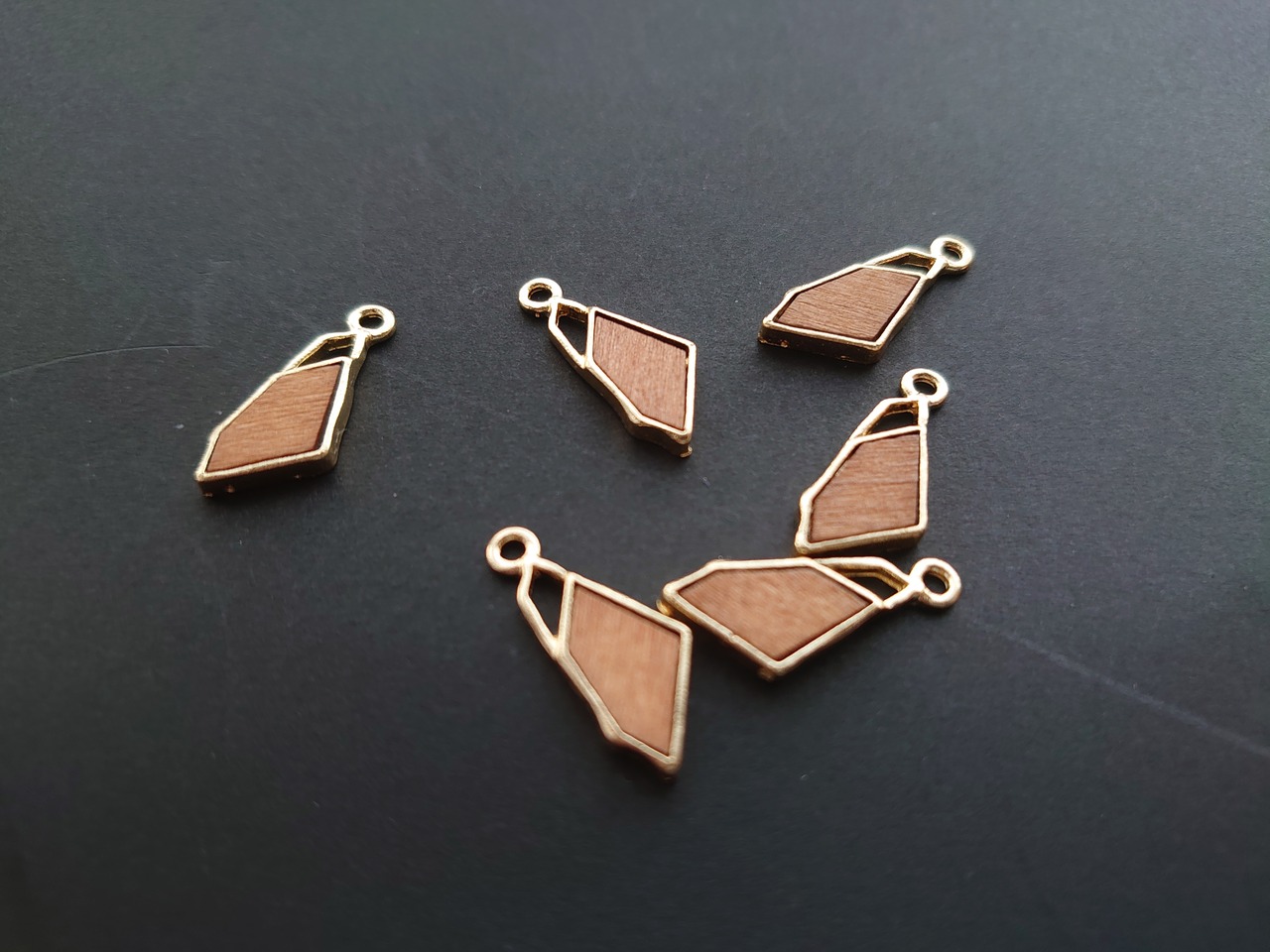 【値下げ在庫限り】ゴールド色台座 ウッド貼付ナチュラルパーツ 2個