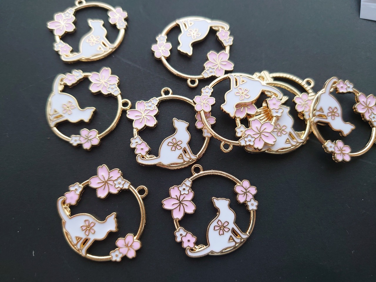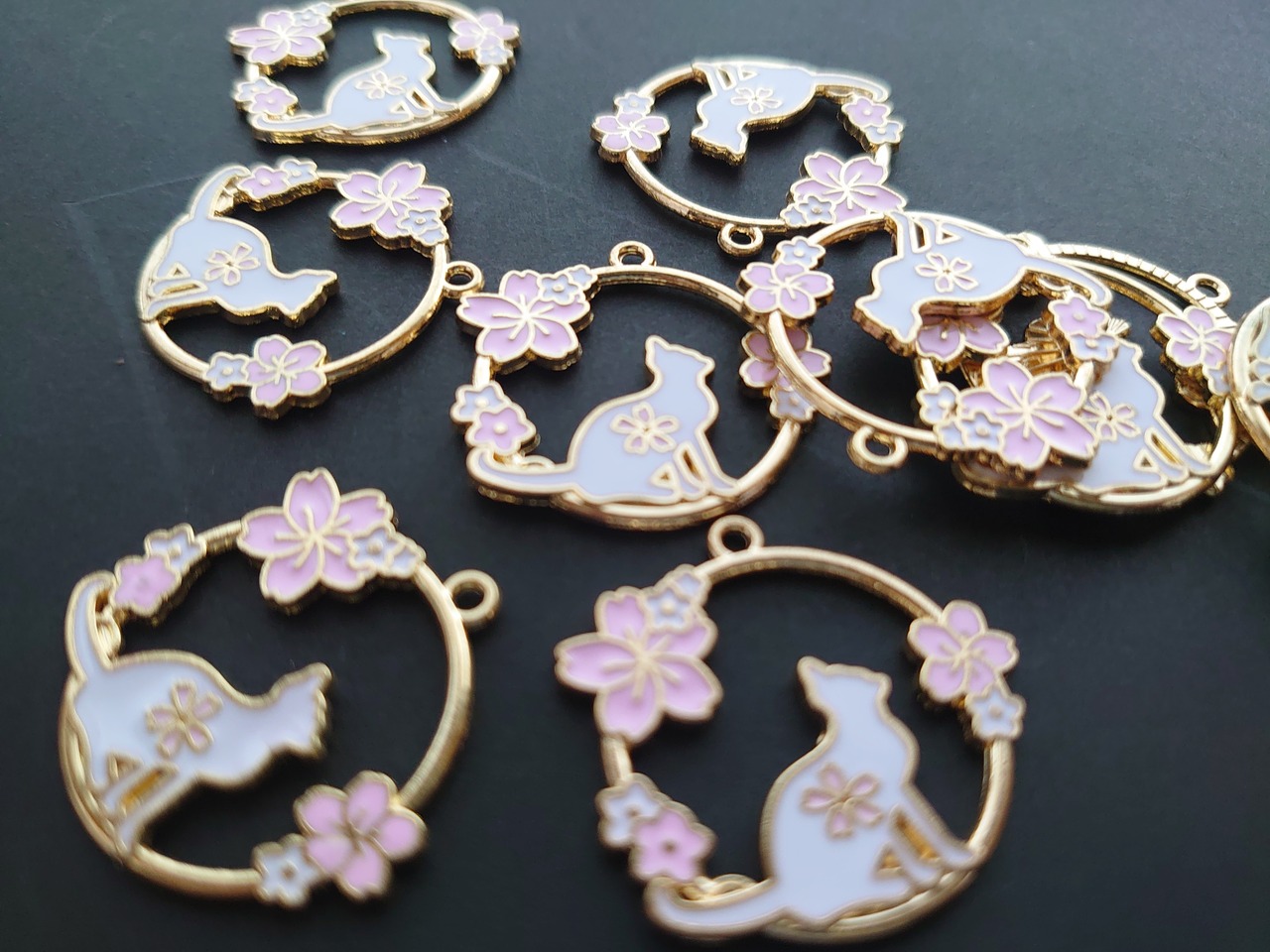 【値下げ在庫限り】 合金 猫 桜 チャーム ラウンド 1個