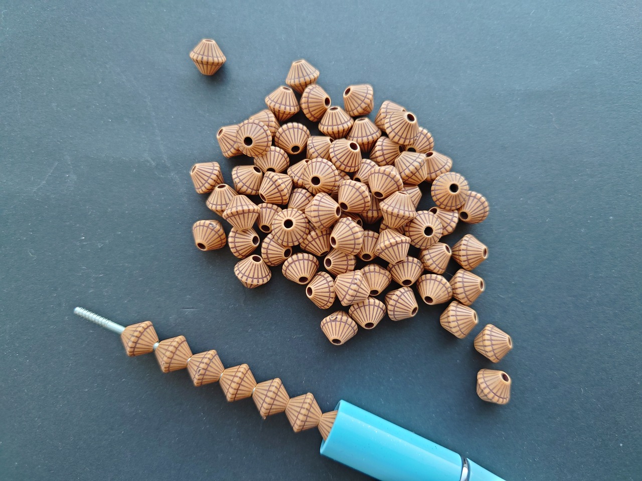 【値下げ在庫限り】アクリル ブラウンライン ソロバン ビーズ 60個
