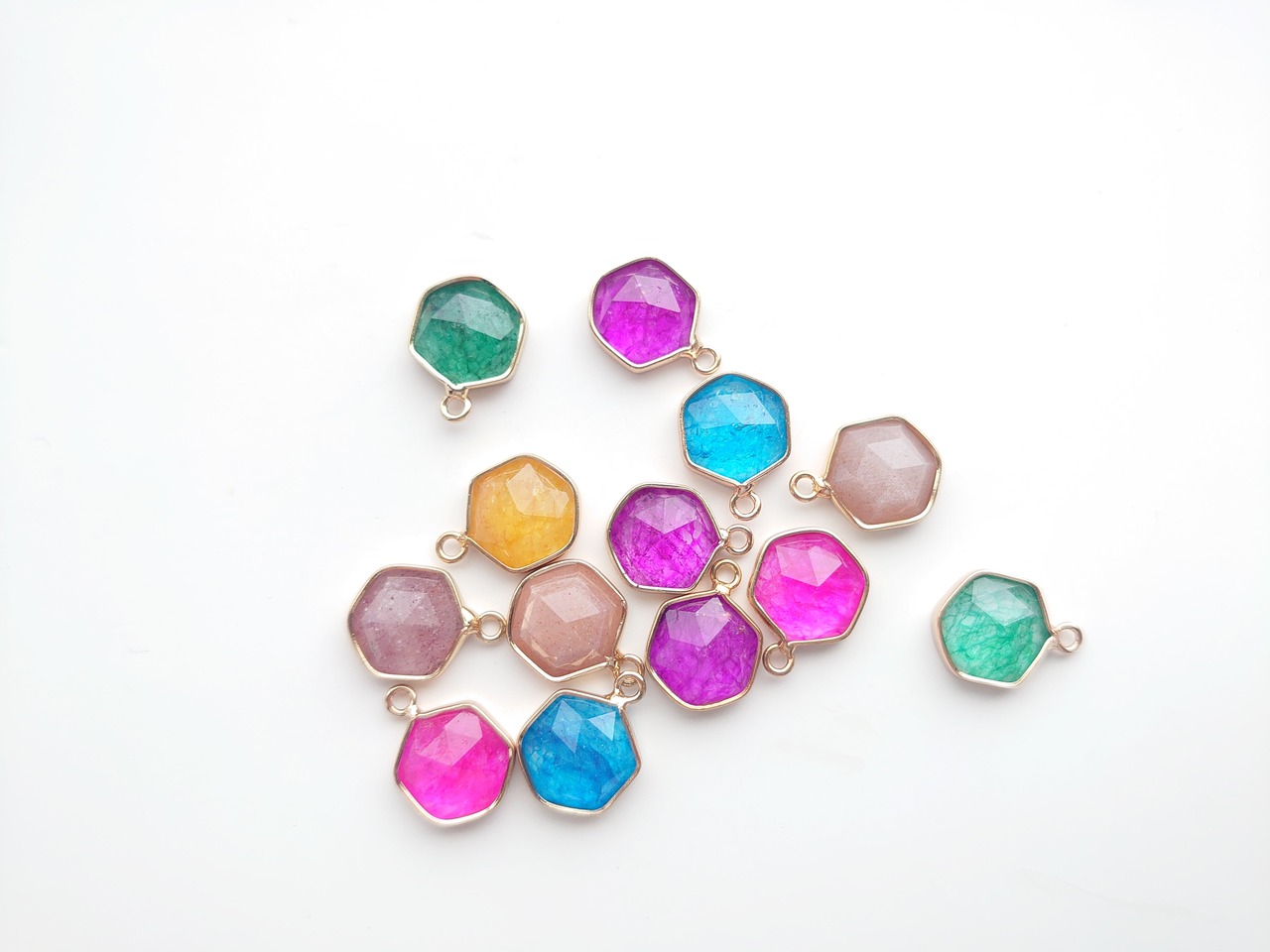【値下げ在庫限り】真鍮 六角形 チャーム 天然石 ガラス ミックス 1個