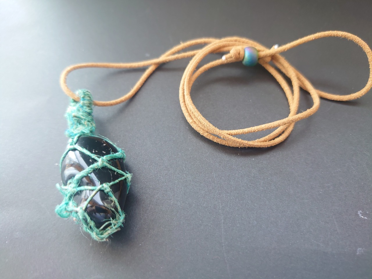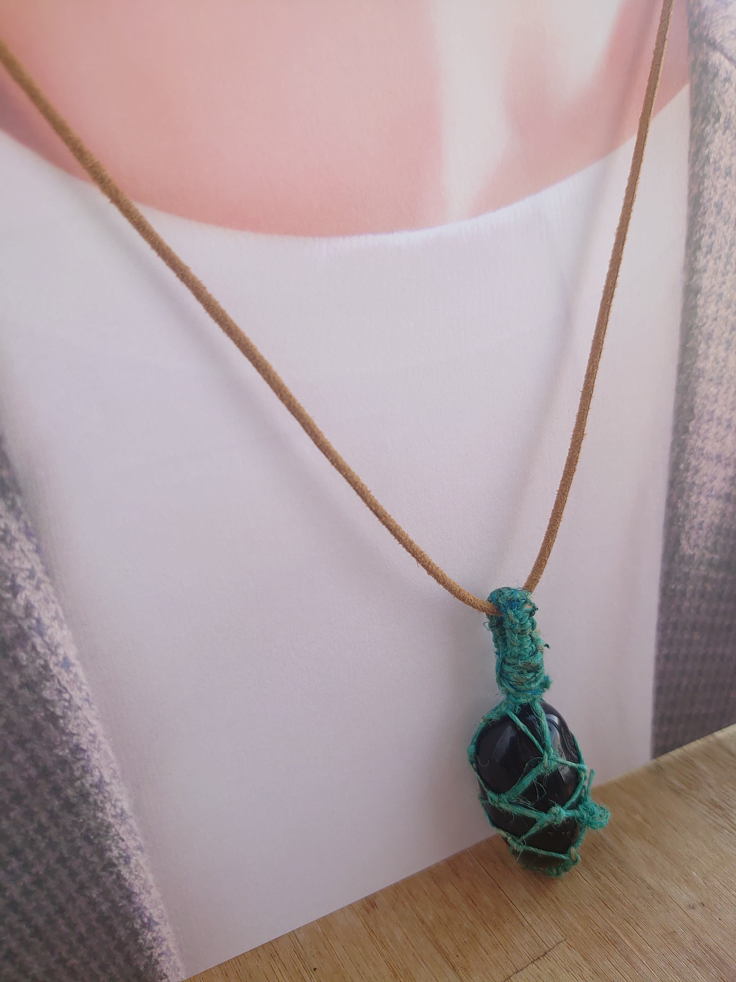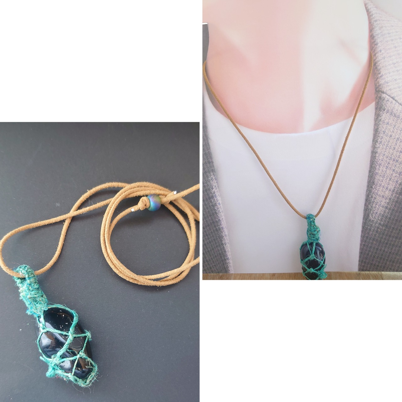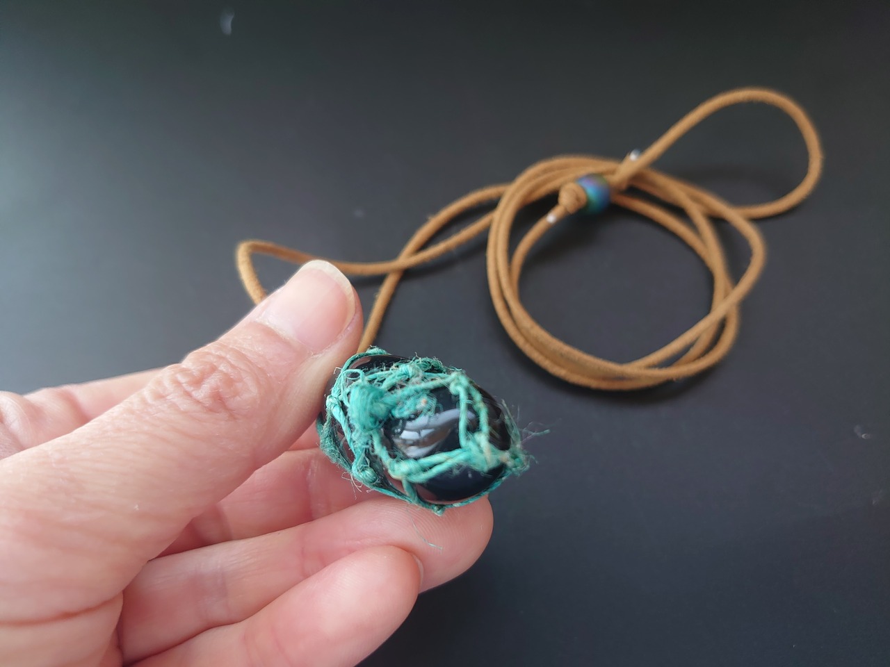 素材:ヘンプ、合皮(ネックレス紐)、ガラス