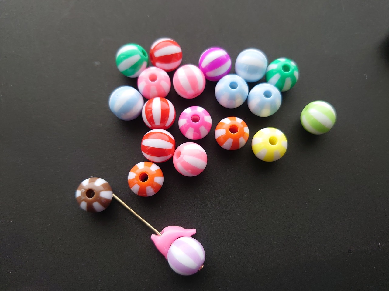 【値下げ在庫限り】アクリル ストライプ ビーズ ボール ミックスカラー 5個