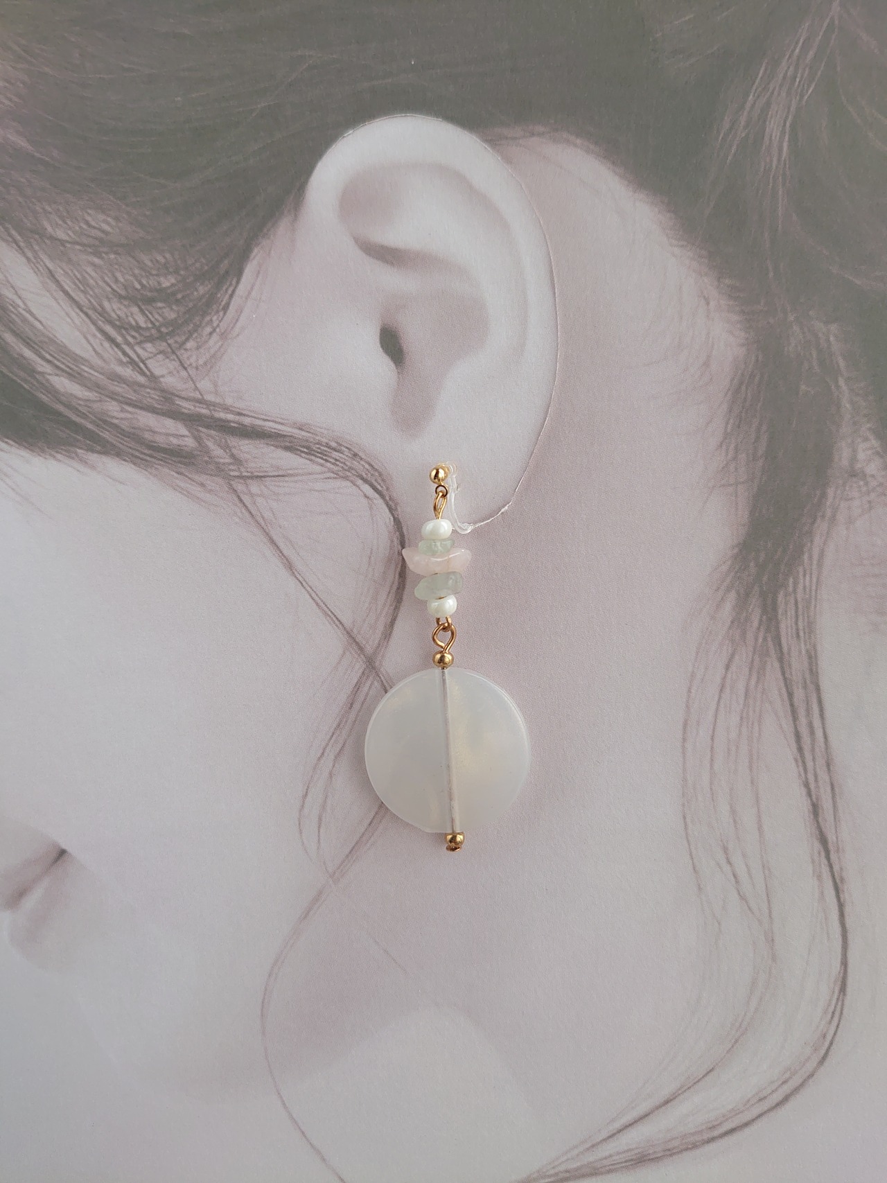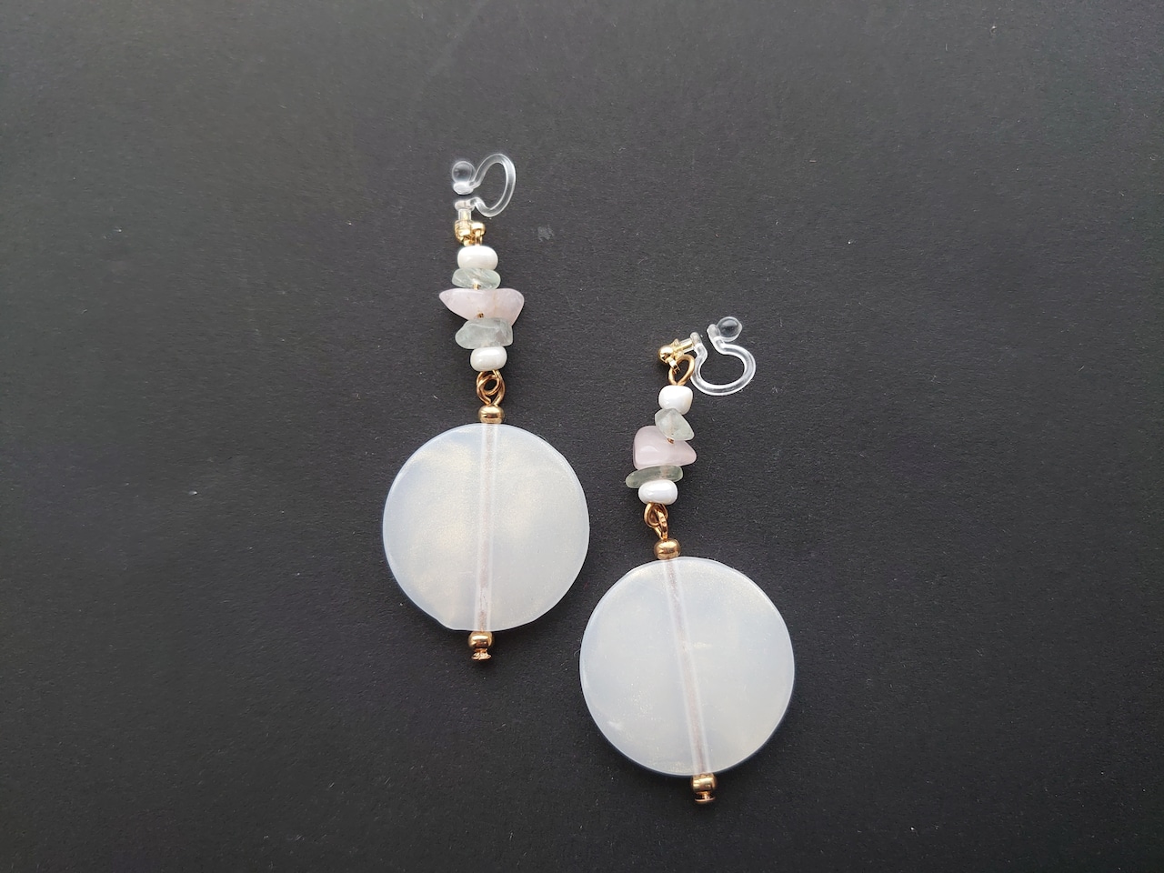 半額以下セール!フラットラウンド サザレ イヤリング ノンホールピアス / PohonhandmadeJewelry