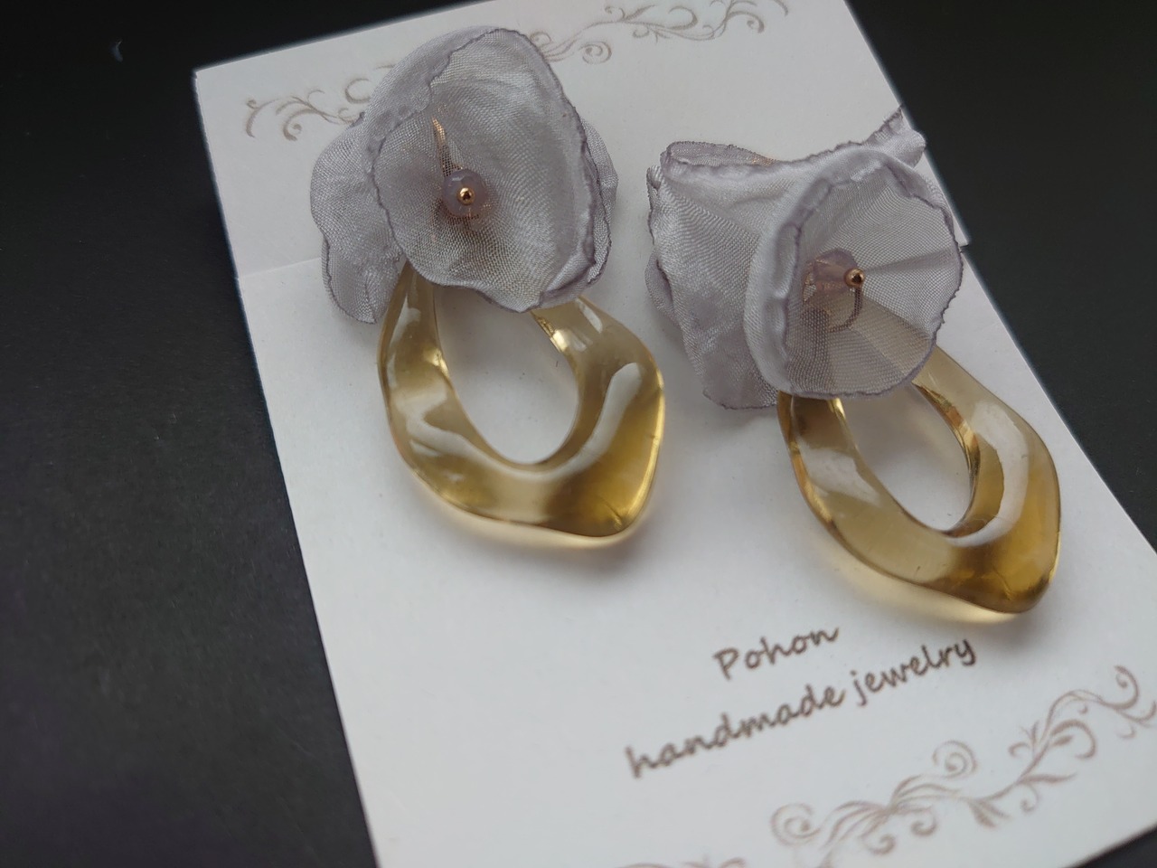 半額以下セール!ゆがみ しずく フラワー イヤリング / PohonhandmadeJewelry