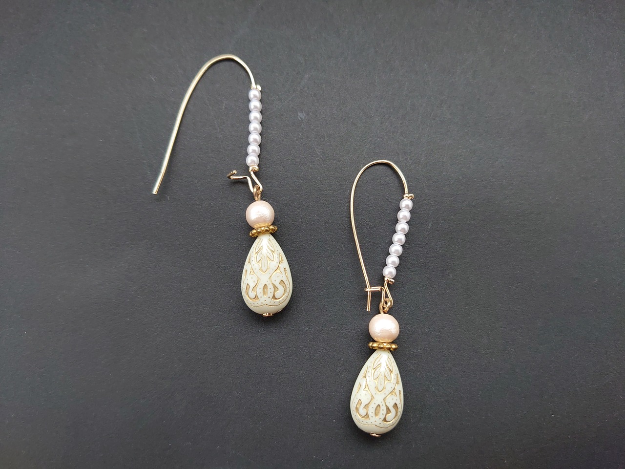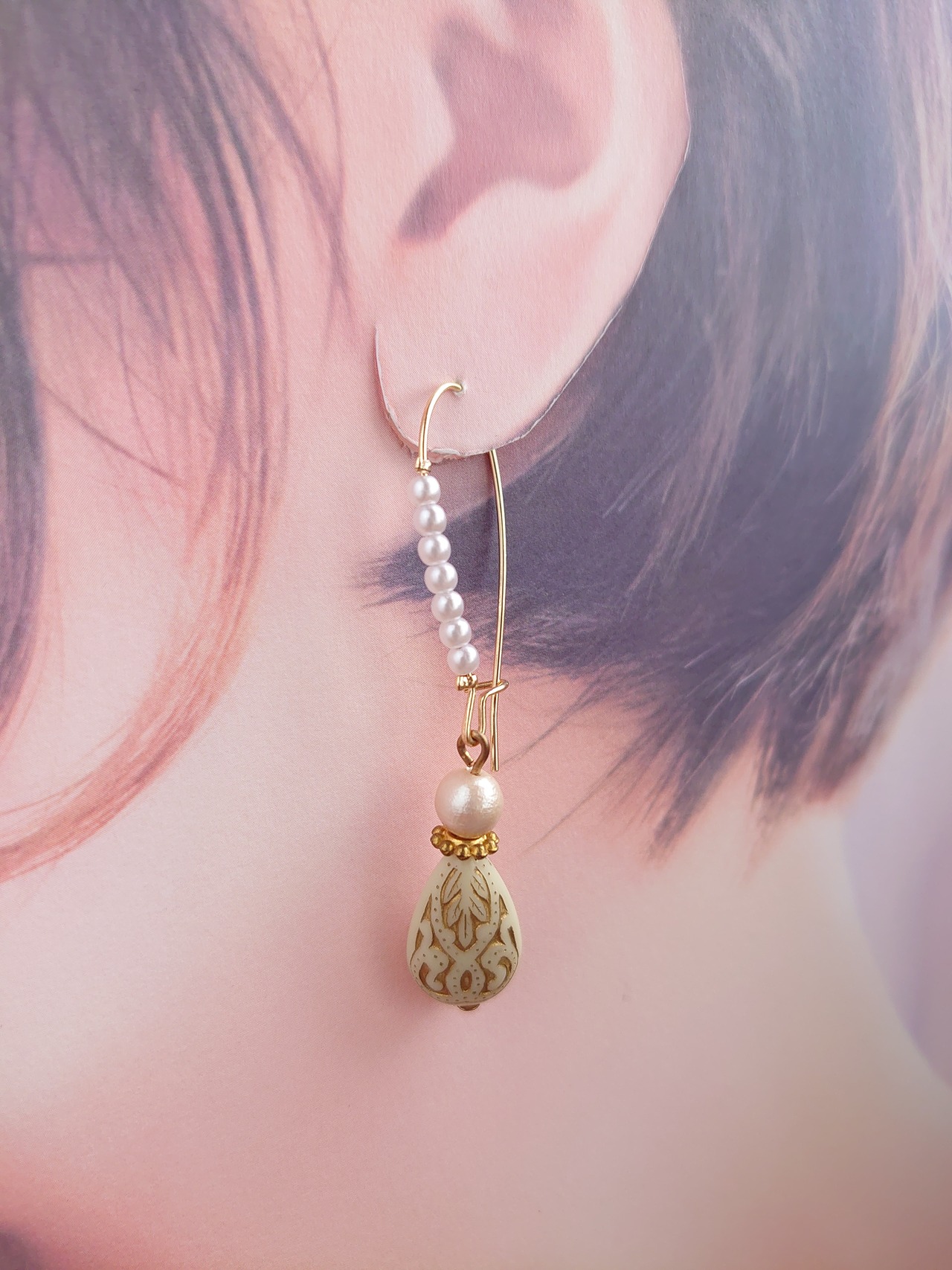 半額以下セール!コットンパール アンティーク調 しずく キドニーフック ピアス / PohonhandmadeJewelry