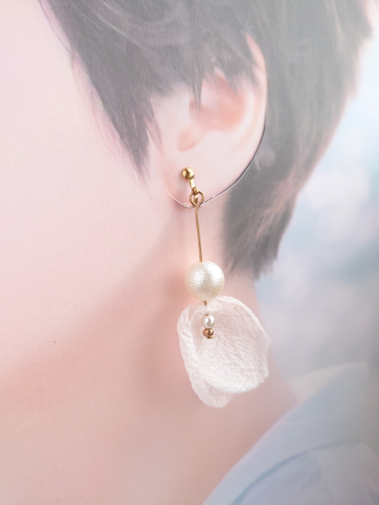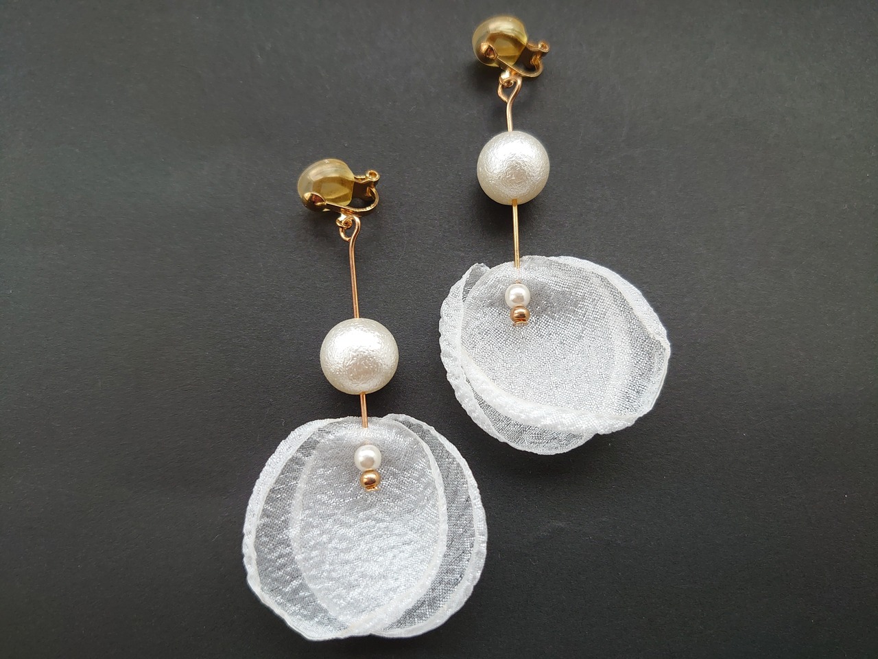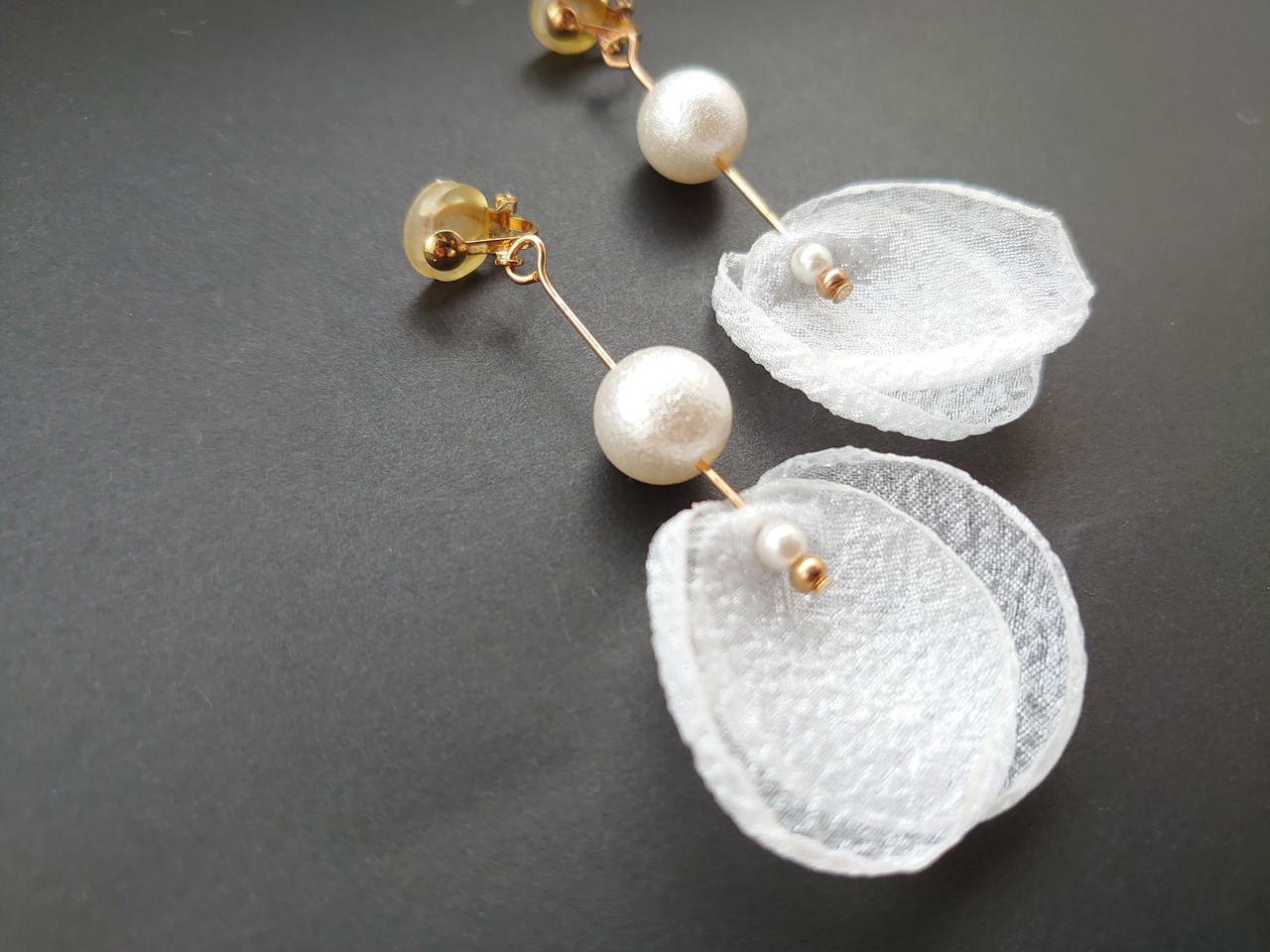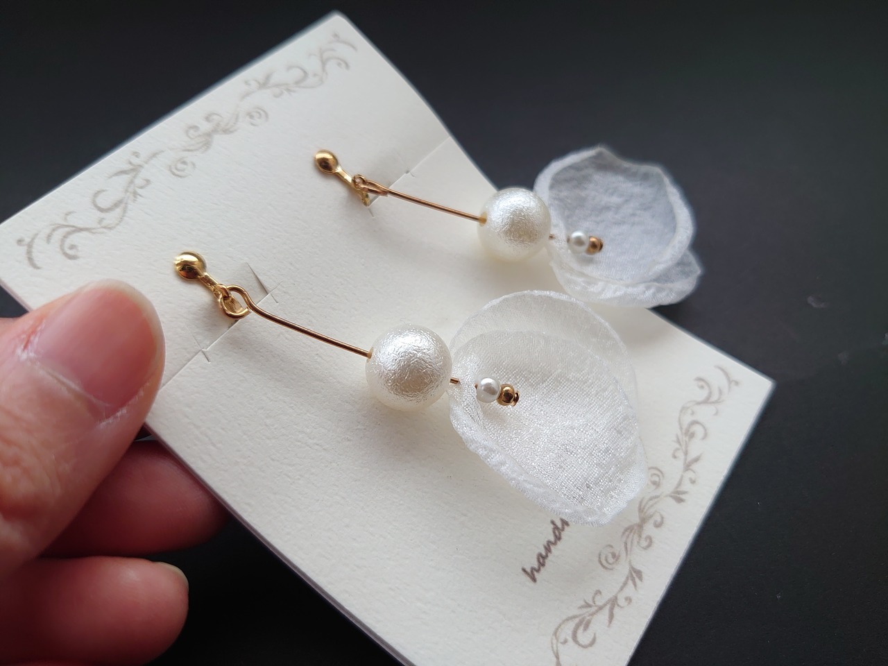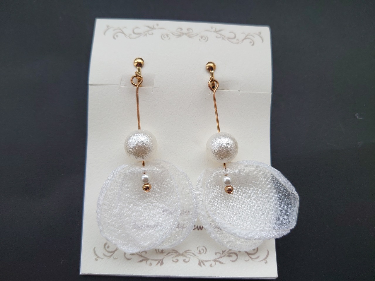 半額以下セール!シワ加工 シフォン シュガーパール イヤリング / PohonhandmadeJewelry