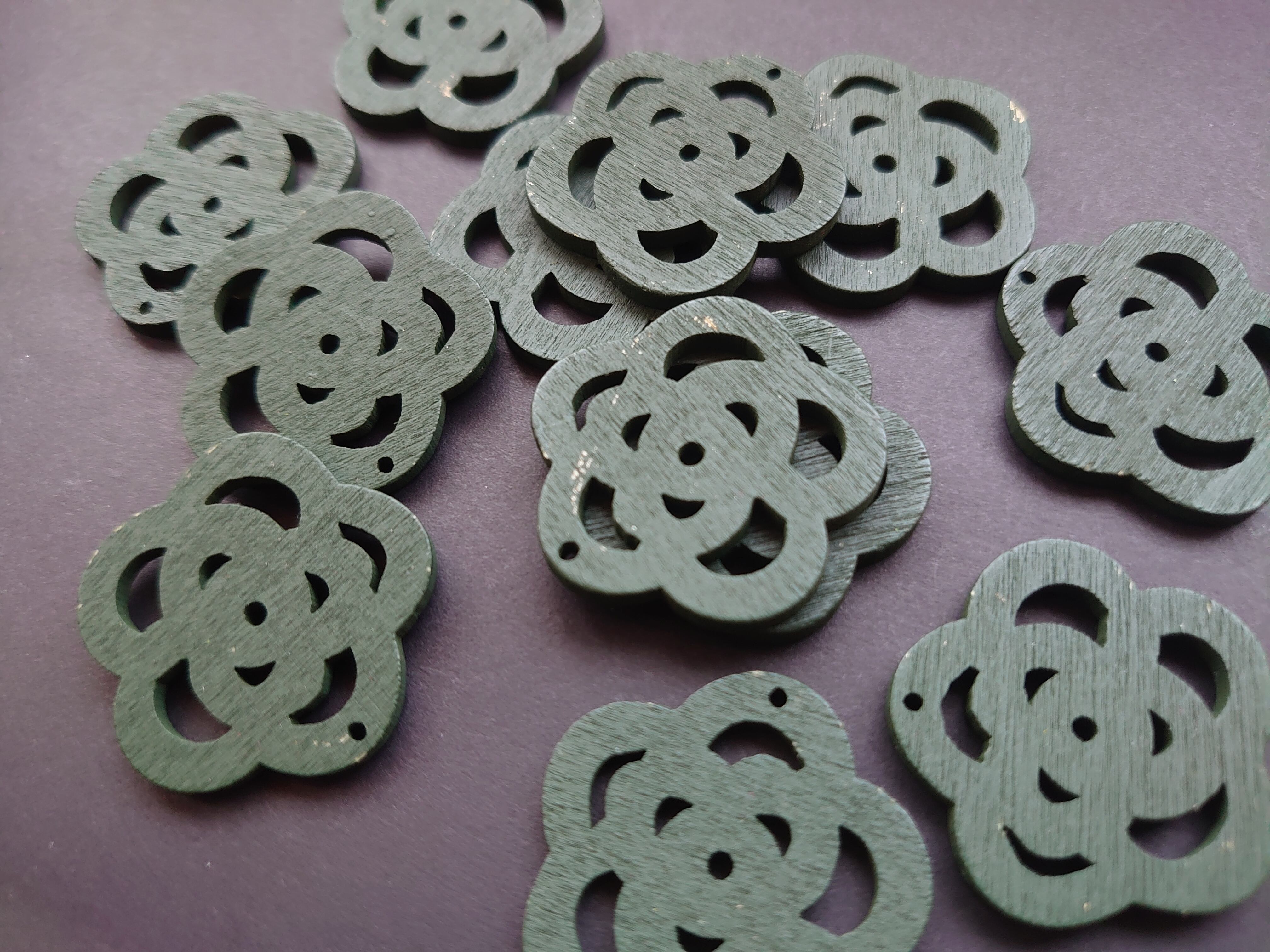 【値下げ在庫限り】ウッド フラワー パーツ ダークスレートグレー 6個