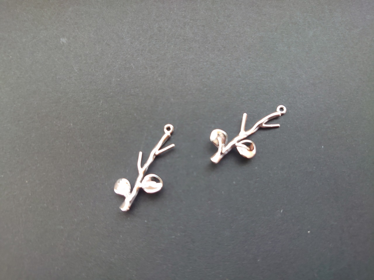 【値下げ在庫限り】真鍮 枝と葉っぱのコネクター ロジウム色 1個