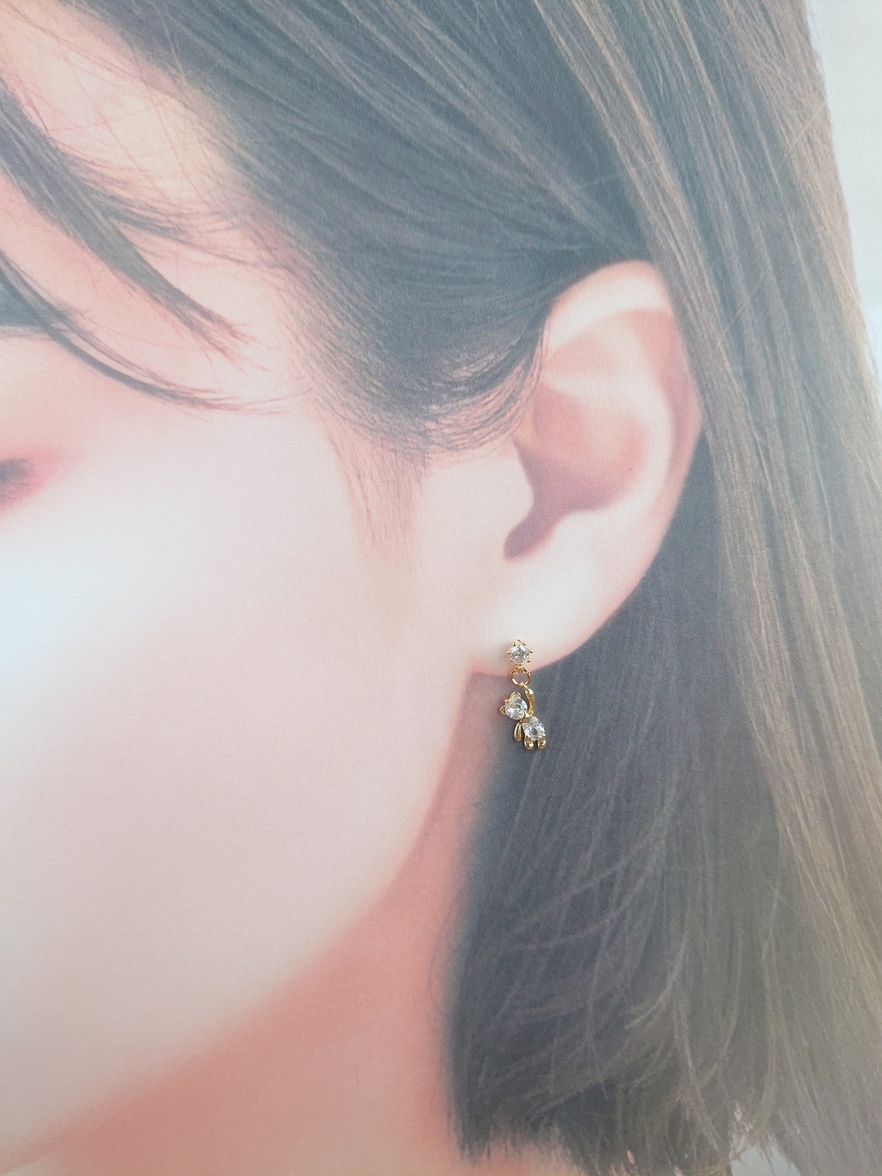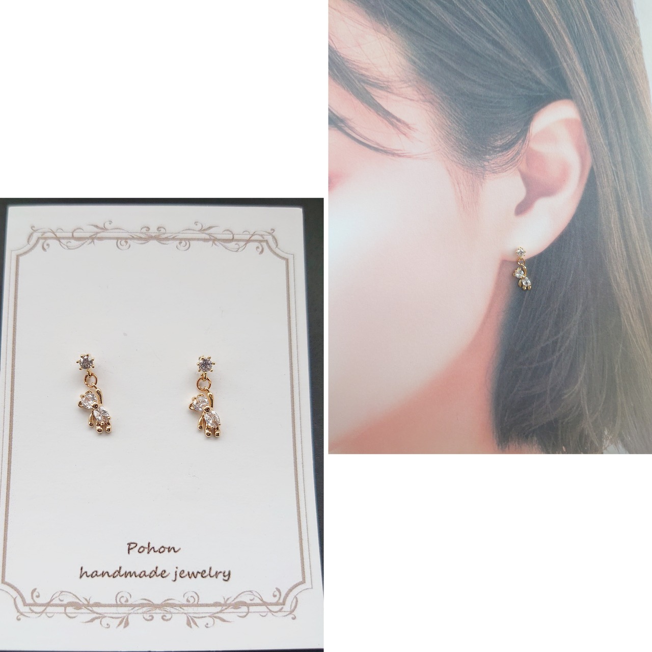 半額以下セール! キュービックジルコニア クマ ピアス / PohonhandmadeJewelry