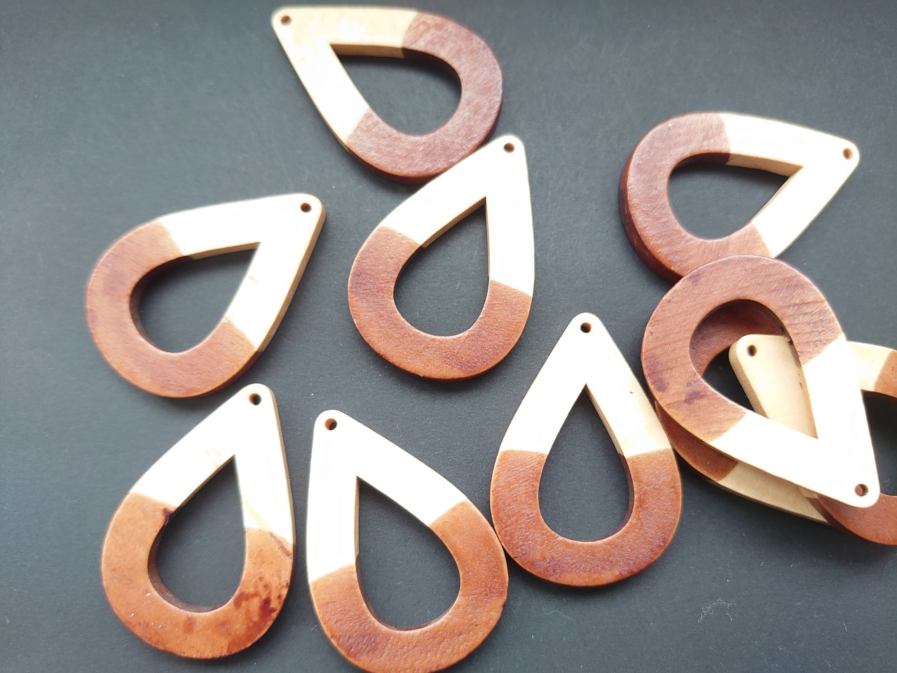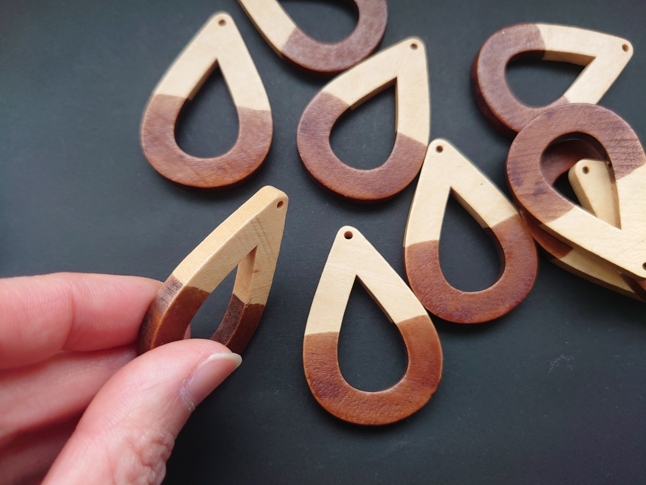 【値下げ在庫限り】ウッド しずく パーツ ハーフカラー 2個